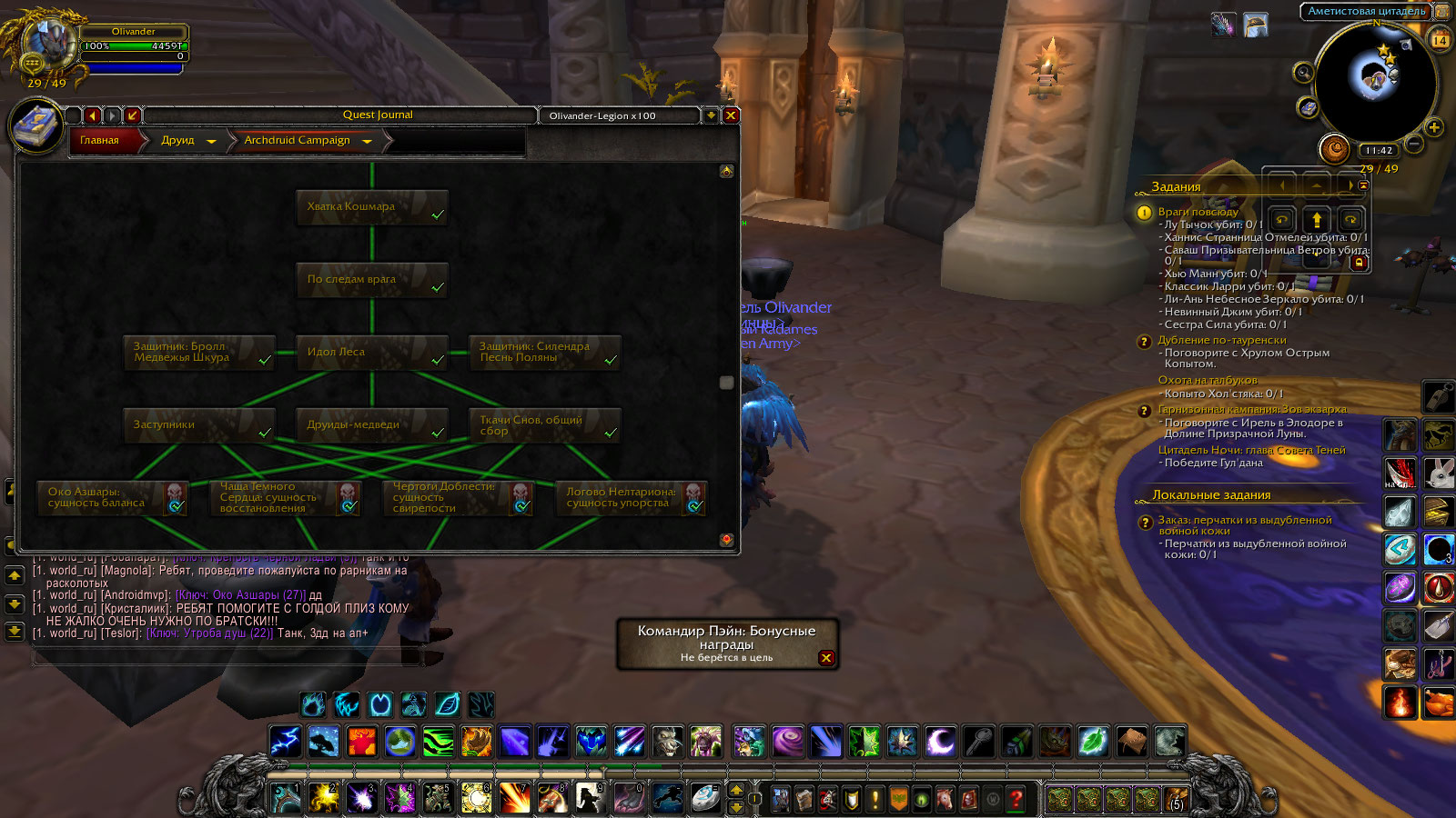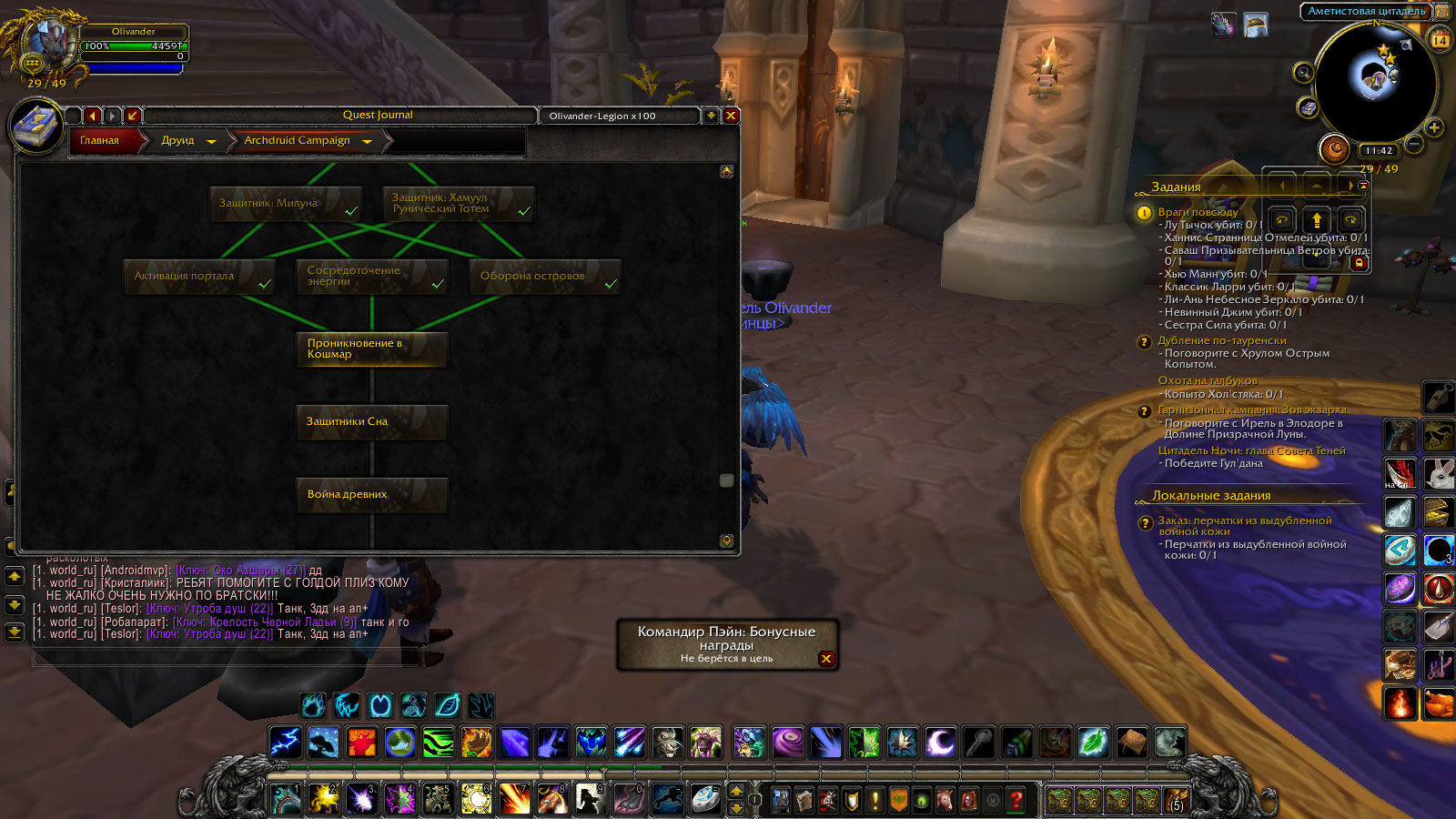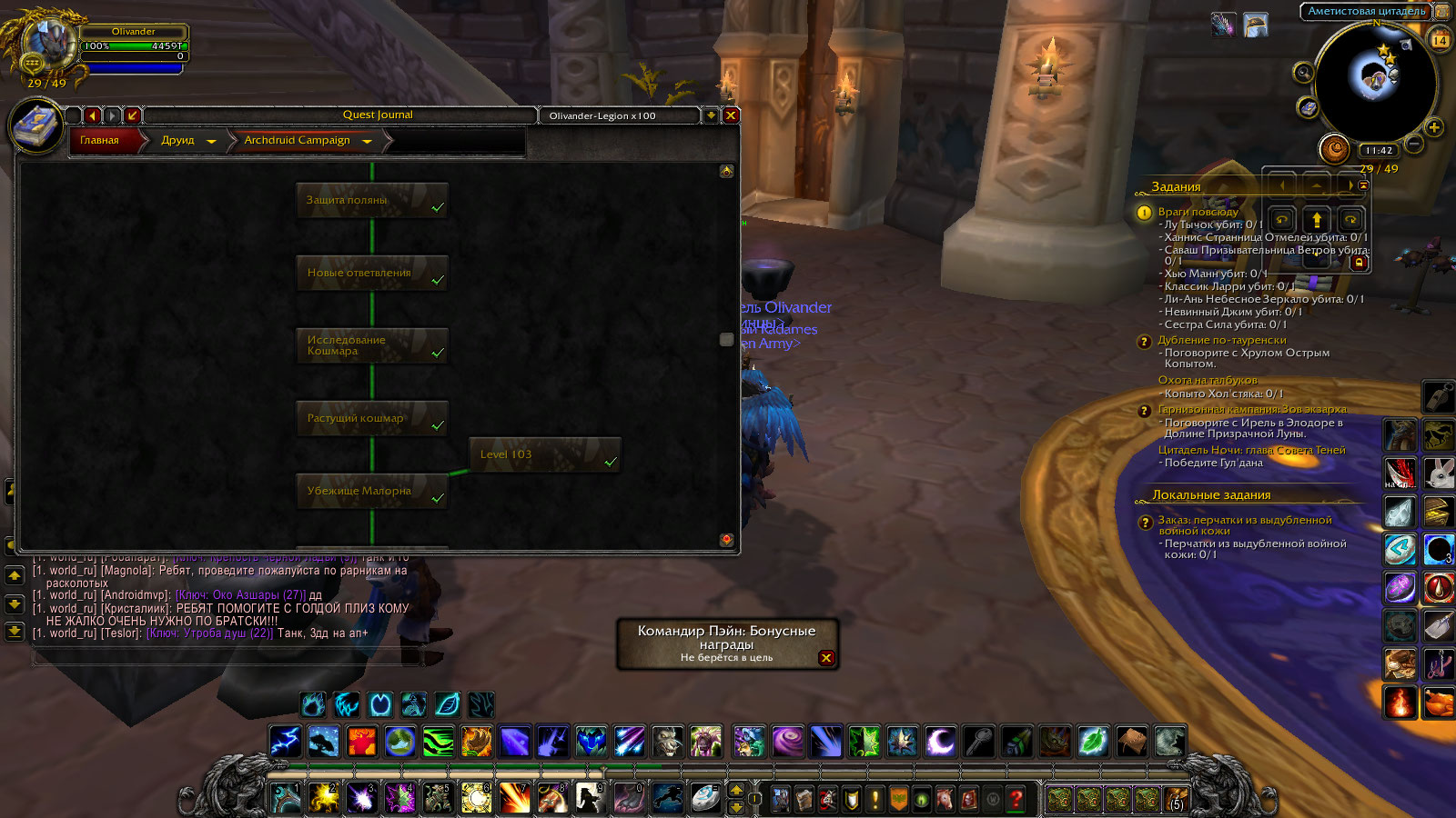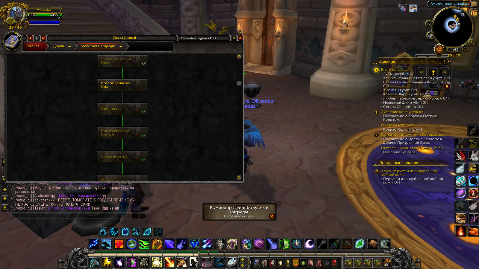Здравствуйте. Проверьте квесты .q s 42365 .q s 42049 .q s 43368 .q s 43403 .q s 44232 Скорей всего вы забыли сделать https://ru.wowhead.com/quest=44232 |