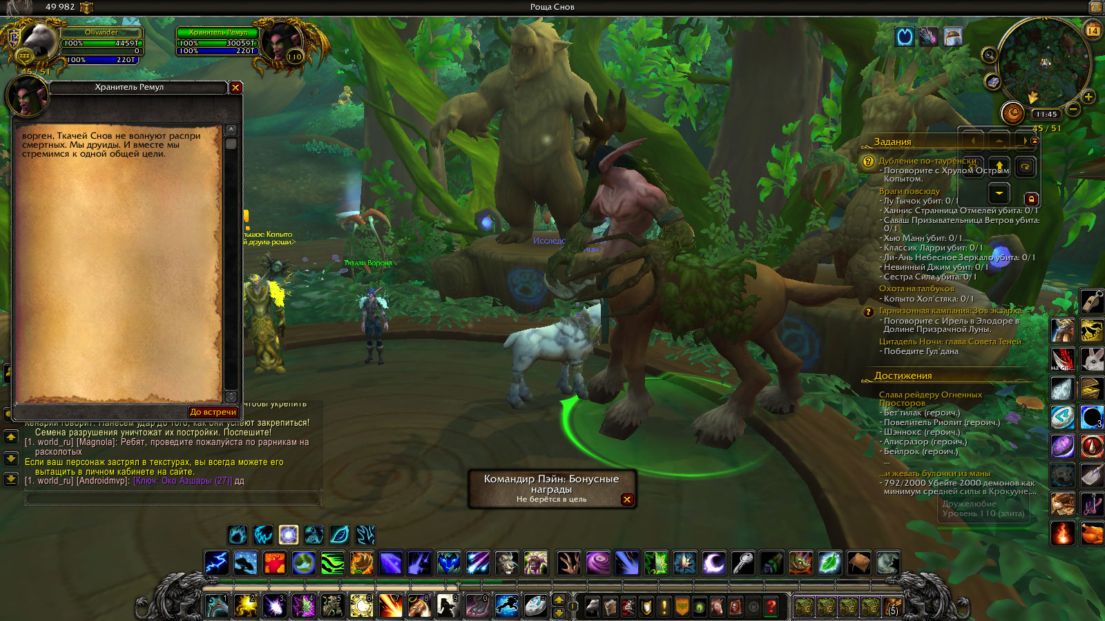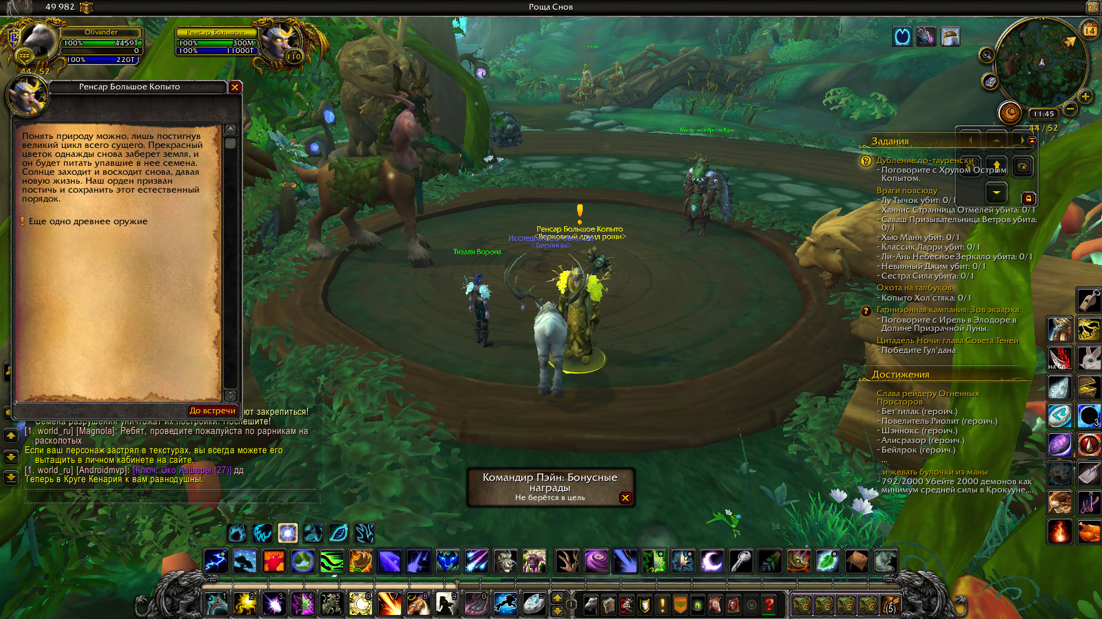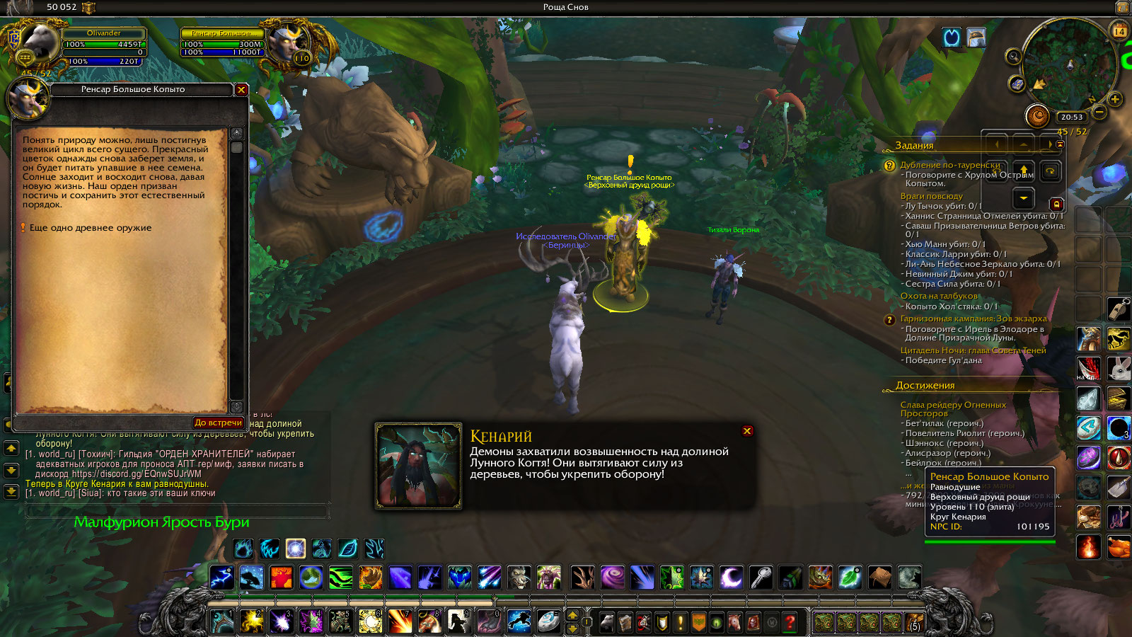 | Description | Нету вендора квеста Возвращение из Сна, что должен находиться в седых холмах по координатам 51 36. Проходил кампанию друида за персонажа дурида Olivander на реалме uwow x100. Все остальные квесты кампании до Проникновение в Комшар(оно не сделано) сделаны. Осталось ВиС чтобы пройти дальше но я не могу его взять. Я просрал(извините за выражение) кампанию друида? | ||||