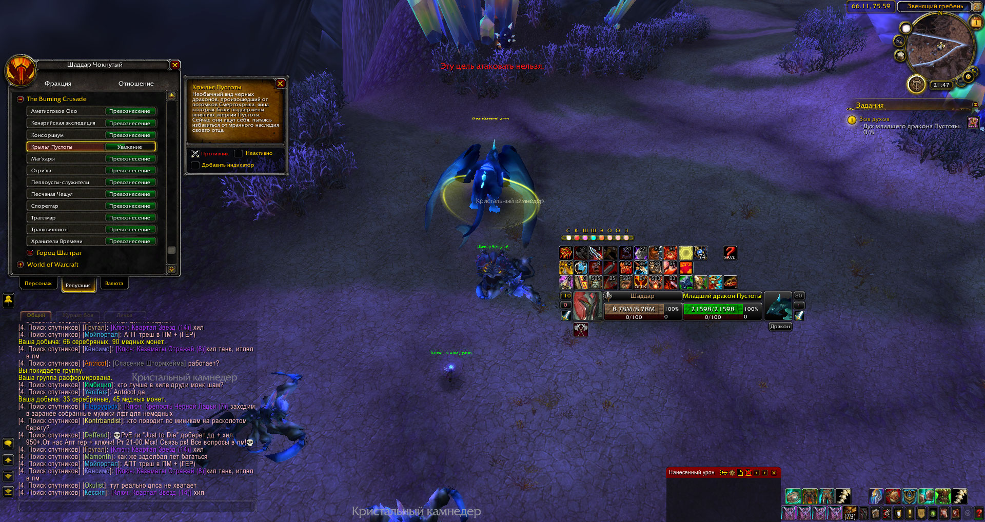 | Description | 1. https://ru.wowhead.com/quest=10853 2. Нельзя атаковать https://ru.wowhead.com/npc=21004 как с репой Крыльев Пустоты с включенным "противник", так и без репы. | ||||