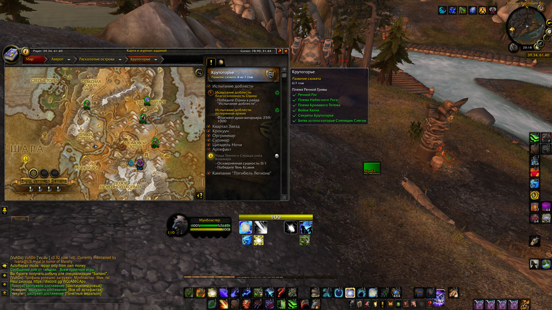 Здравствуйте. Идете к себе в оплот класса, тыкаете в тактическую карту и смотрите на третью вкладку. Изначально там были запускающие квесты сюжеток. На Крутогорье первый квест - встретить на площадке в Даларне (в центре площадки НПС Воитель Оро и пройти с ним пять шагов до полетки. После чего полететь в Крутогорье в Громовой тотем, внизу возде нижних входов встретить Оро и сдать квест Майле Крутогор там же на нижнем ярусе. Если на карте ничего нет: садитесь на такси и летите по двум адресам в Крутогорье : Лесной водопад Дозор Каменного копыта и там и там будет стоять воитель Оро с таким же квестом, как второй квест в Даларане. Сдавать как во всех случаях Майле. Иной случай - начальные квесты сделаны но какой то пропущен: ставьте аддон BtwQuests и добавку к нему BtwQuests:Legion для версии 7.3.5 возле радара должна будет появиться книжка. Нажали, выбрали Крутогорье, выбрали первую главу - посмотрели состояние квестов Потом или сюда или на вовхед за картой где брать квест. |