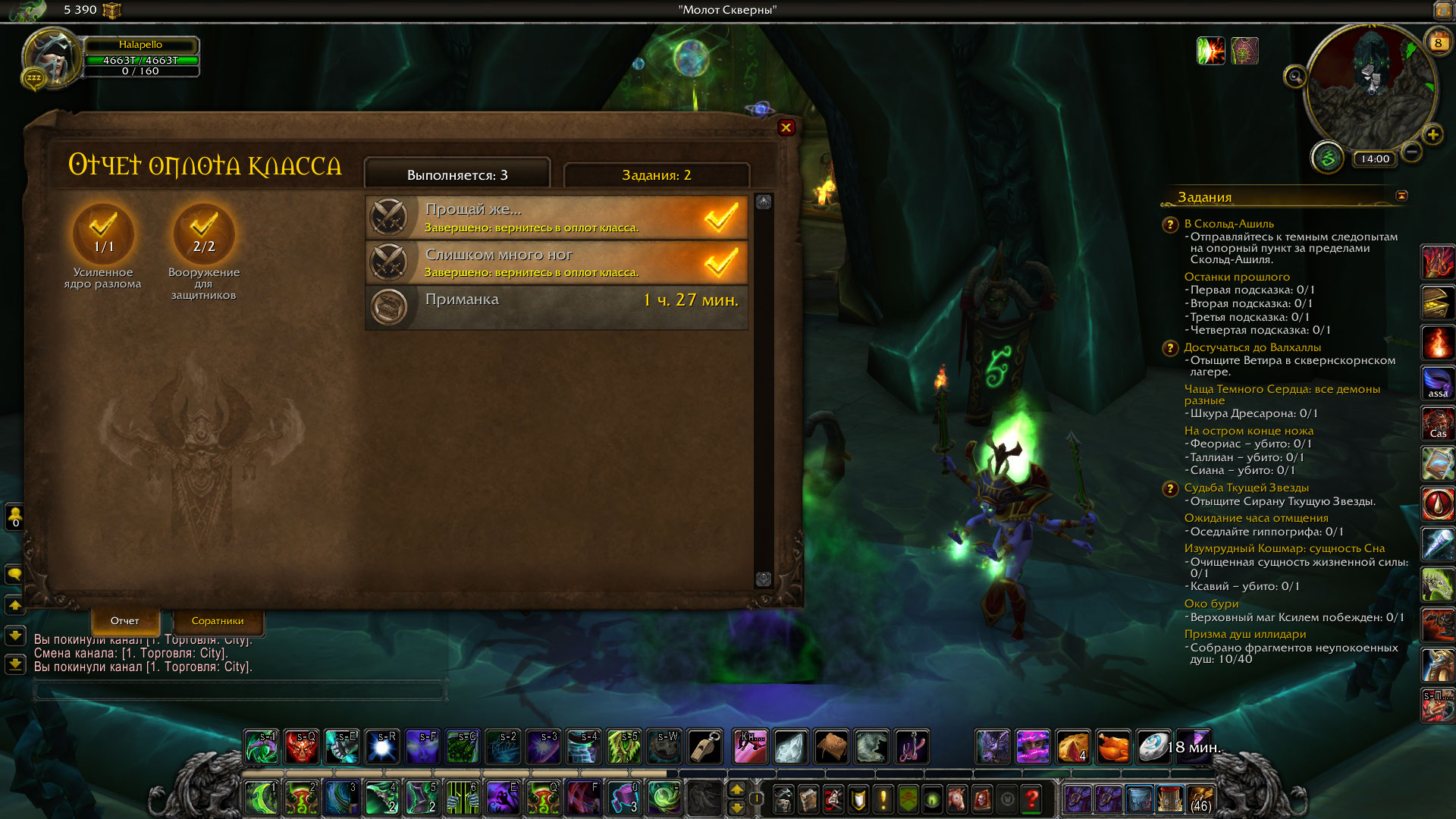 "Усиленное ядро разлома" - как прыгнули с даларана, так на входе в оплот внутри сразу стоит нпс с заказом и рядом зеленая фигня если заказ выполнен. "Снаряжение для защитников" - у ДХ не выбирал, там есть такое? не могу подсказать. на радаре желтые точки в оплоте поищите, может на нижнем ярусе чтото есть. |
