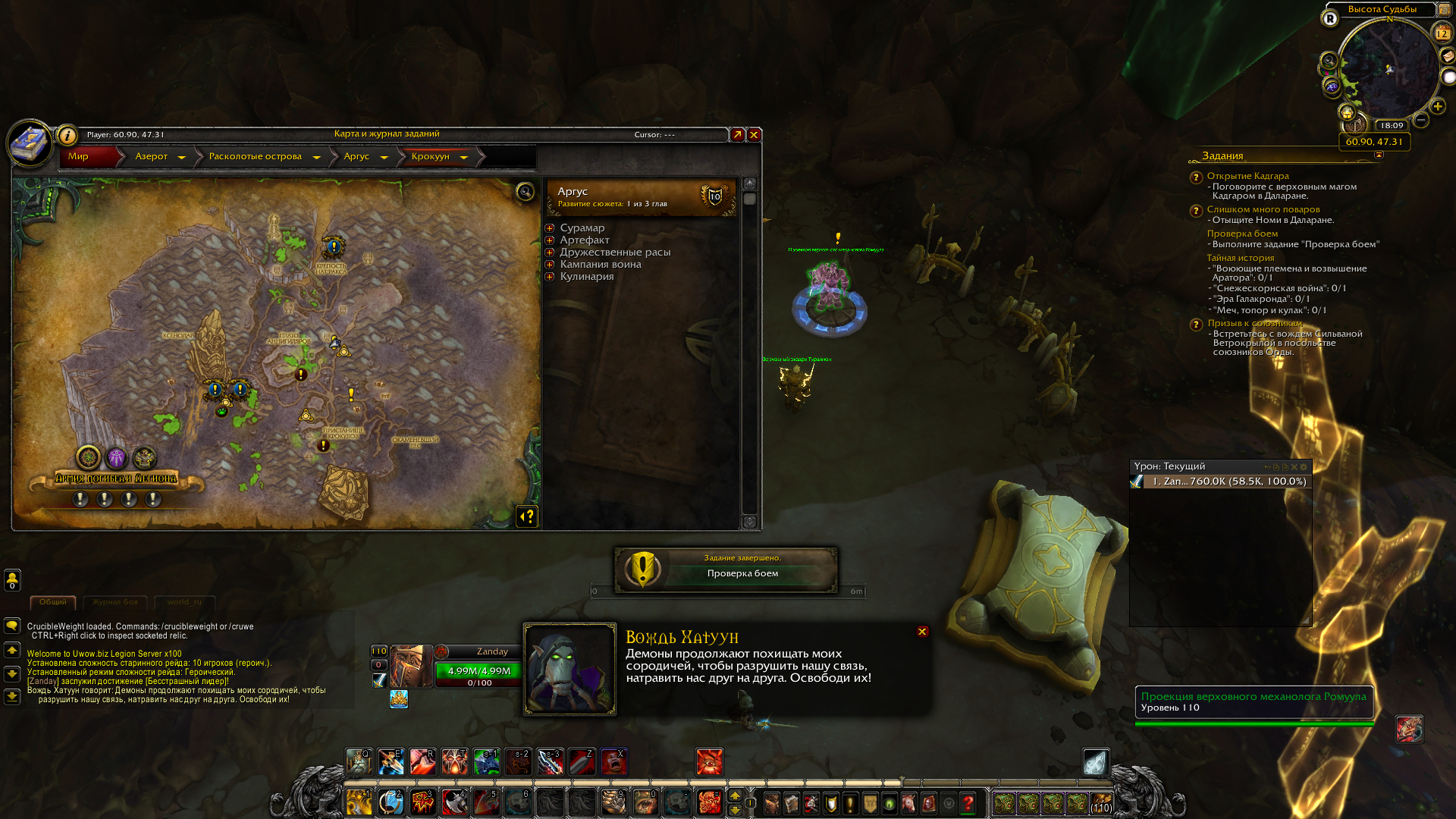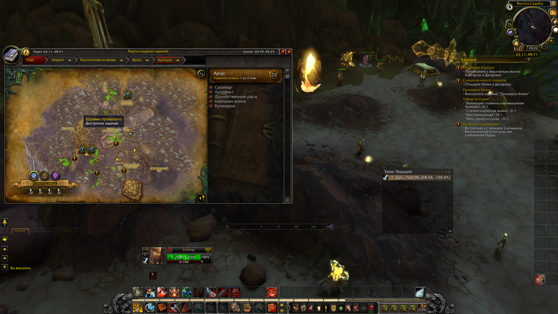 Здравствуйте.Введите команду .q s в чат и наведите таргет на себя. .q s 47892 .q s 47891 .q s 47890 .q s 47889 Так же,установите аддон BtwquestLegion |