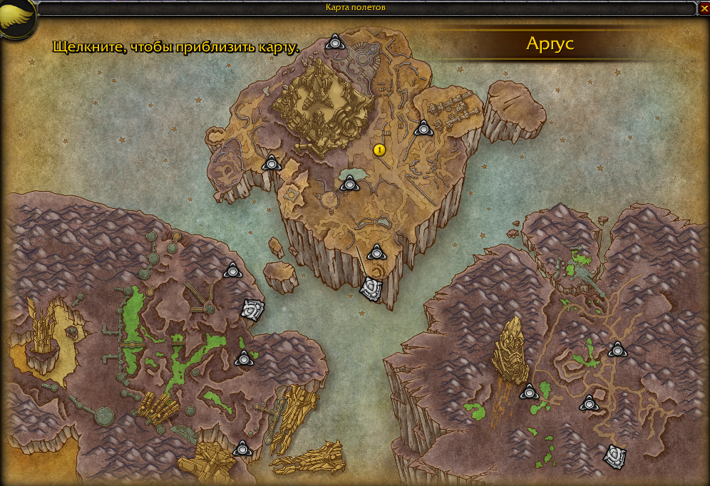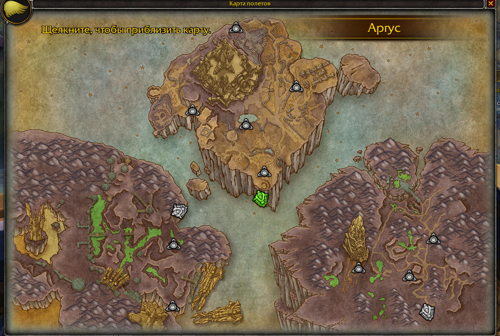 Комментарий к закрытой уже задаче 15017, но фактически по теме этой задачи. Минут пятнадцать читал комментарий 45170. Погуглил немного тему. Здравый смысл попытался устроить суицид, но потом несколько успокоился. Фактически любой персонаж имеет в своем распоряжении только один Виндикар, который припаркован к локации, где на поверхности находится персонаж.Когда персонаж телепортируется с помощью навигационной панели к маяку озаренных все равно куда, то Виндикар автоматически паркуется в точке привязки локации назначения. Когда персонаж находится на Виндикаре и желает переместиться в другую локацию, он может либо переместить сам Виндикар в новую точку привязки над другой локацией, либо прыгнет сам в другую локацию, тогда Виндикар следом за ним припаркуется над той же локацией. Вот что получилось в результате: Ускоренное перемещение между "полетными точками на Аргусе осуществляется посредством телепортации. В качестве терминалов выступают Маяк Виндикара и маяки озаренных на поверхности. Это многоадресные терминалы, открывающие карту и позволяющие выбрать конечную точку телепортации. Также у нас присутствуют адресные порталы с поверхности локации на Виндикар. Они расположены в точках привязки Виндикара на соответствующей локации. При использовании адресного портала на поверхности персонажа должно телепортировать на Виндикар над этой локацией. Маяки озаренных допускают выбор конечной точки из списка уже открытых маяков озаренных по сюжетке, а также маяк Виндикара, который отображается на точке привязки Виндикара в текущей локации персонажа. В иные точки (неоткрытые пока что по сюжетке, а также Маяк Виндикара над другими локациями Аргуса) телепорт от маяка озаренных построить нельзя. В случае если персонаж использует Маяк Виндикара в качестве терминала, он должен иметь возможность выбора между координатами Виндикара над точками привязки других локаций (если они уже доступны по сюжетке) и открытыми по сюжетке маяками озаренных во всех доступных локациях Аргуса.. если персонаж находится на Виндикаре над любой локацией Аргуса, он может попросить Ромуула спустить его на поверхность Аргуса прямо под Виндикаром без использования маяка озаренных. Также персонаж может использовать портал в Даларан, чтобы покинуть Аргус и вернуться на Расколотые острова. Подводя итог - когда персонаж на поверхности у маяка озаренных - он должен видеть на карте только один Виндикар и все открытые маяки озаренных, как цели для перемещения. Когда персонаж на Виндикаре - карта маяка Виндикара должна отображать все доступные по сюжету позиции Виндикара и все доступные маяки озаренных в локациях. У Serafima на скриншоте невозможно определить текущее положение персонажа. Возможно, он находился на Виндикаре над Крокууном, так как именно там отсутствует значок Виндикара (как собственно и описал проблему Serafima). То есть это либо временный визуальный баг карты телепортов, либо у Serafima пропущены какие то квесты в самом начале кампании Аргуса и тогда непонятно как остальные квесты были выполнены. Кампания Аргуса линейная в основном. зы: Как пояснение - картинка из гайда http://wowgaid.ru/wp-content/uploads/2017/08/vindikar-gajd-wow-7-3-argus-12.jpg и ссылка на сам гайд http://wowgaid.ru/posts/vindikar-wow-7-3-gajd На картинке видно что персонаж находится на Виндикаре над Пустошами Анторуса и ему доступны два пол