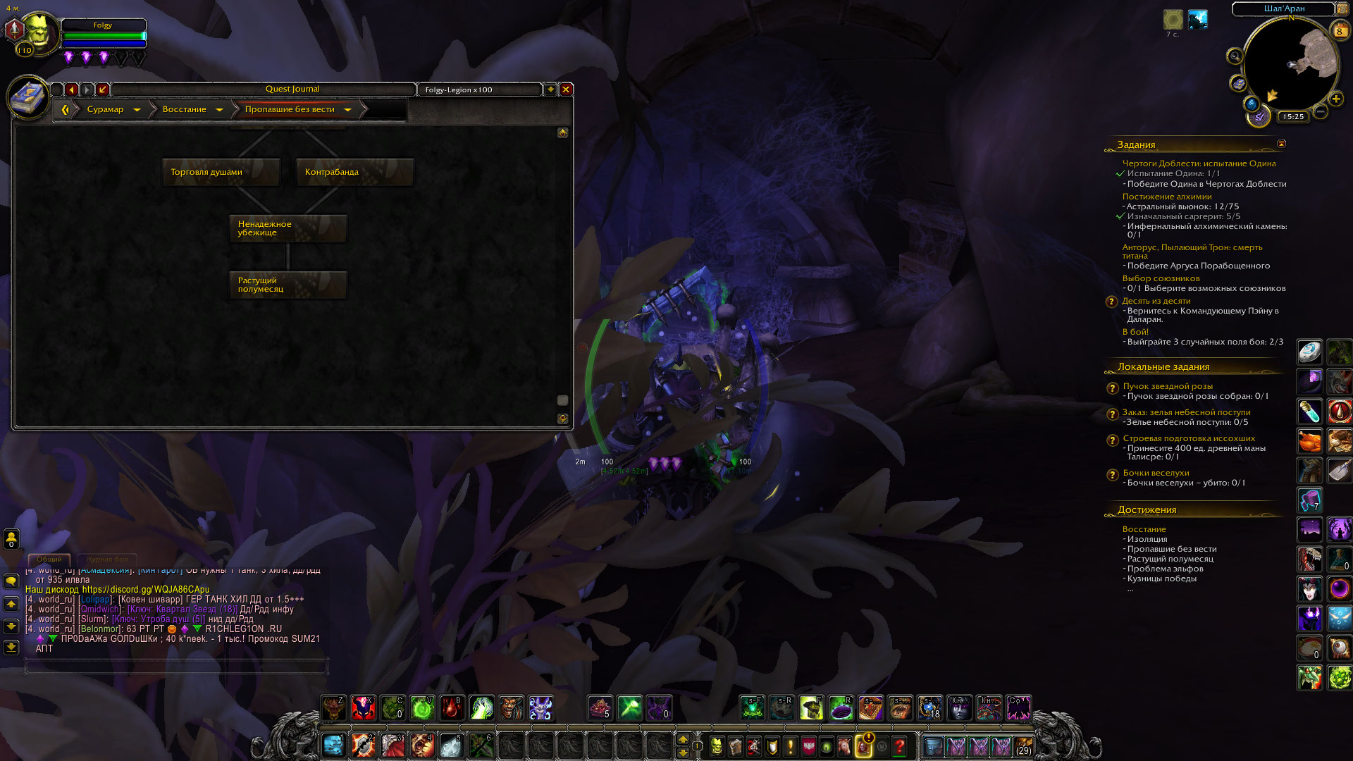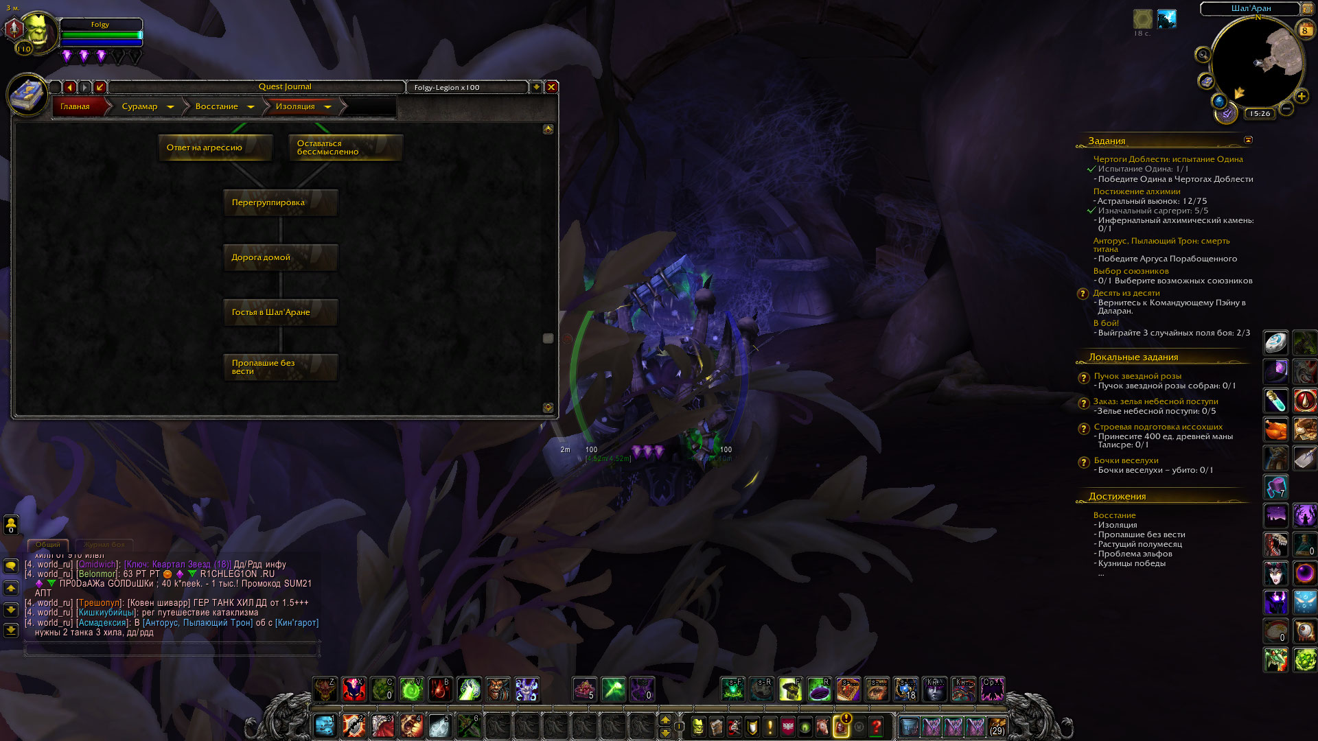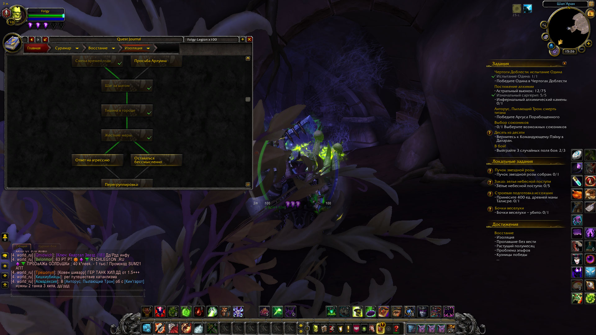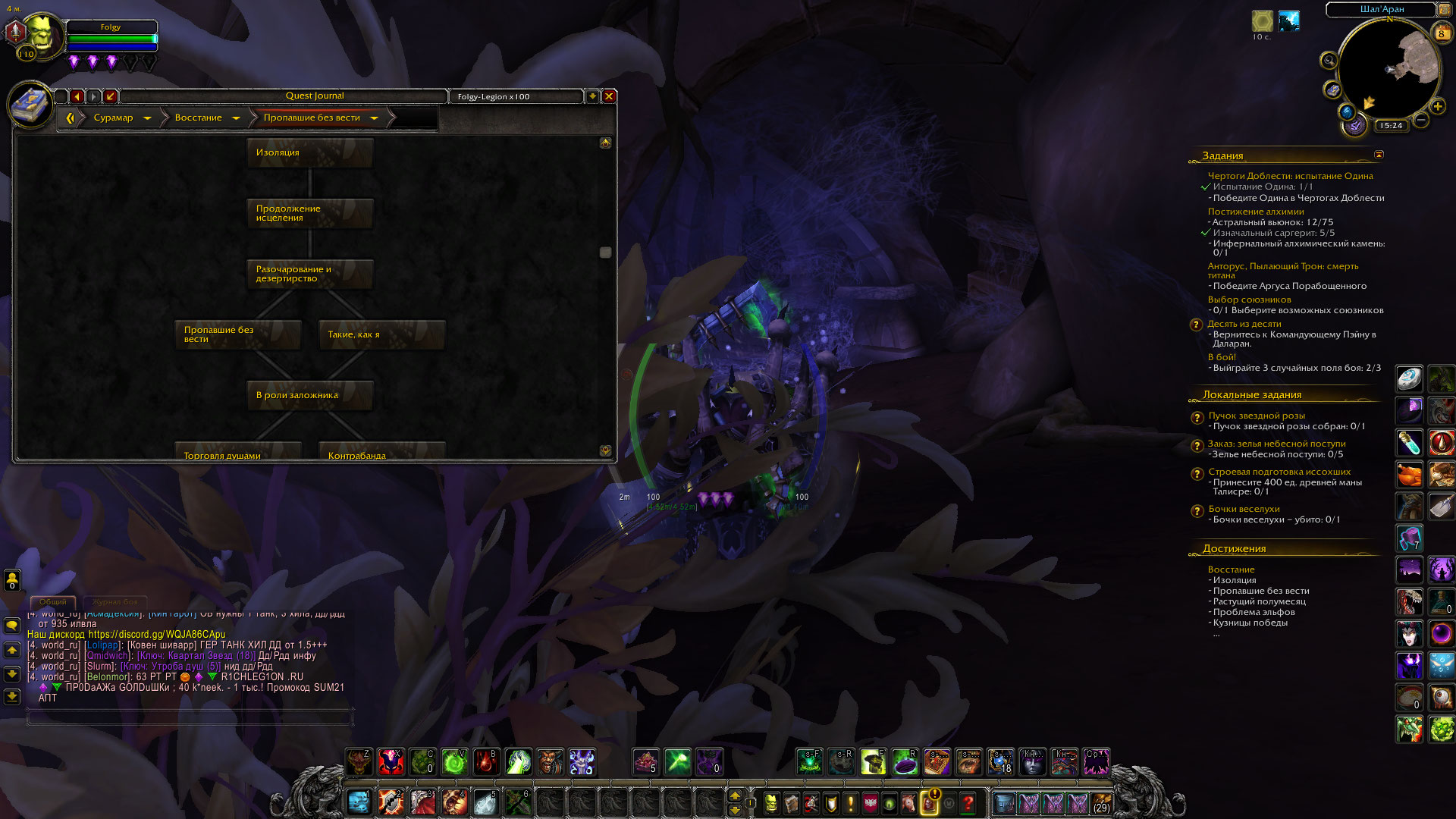 Здравствуйте! А чтобы вам далеко не бегать, приложу аддон в топик. Заскриньте состояние цепочек в Сурамаре и приложите скрины сюда BtWQuestsLegion.zip (2,572,338 bytes) |
