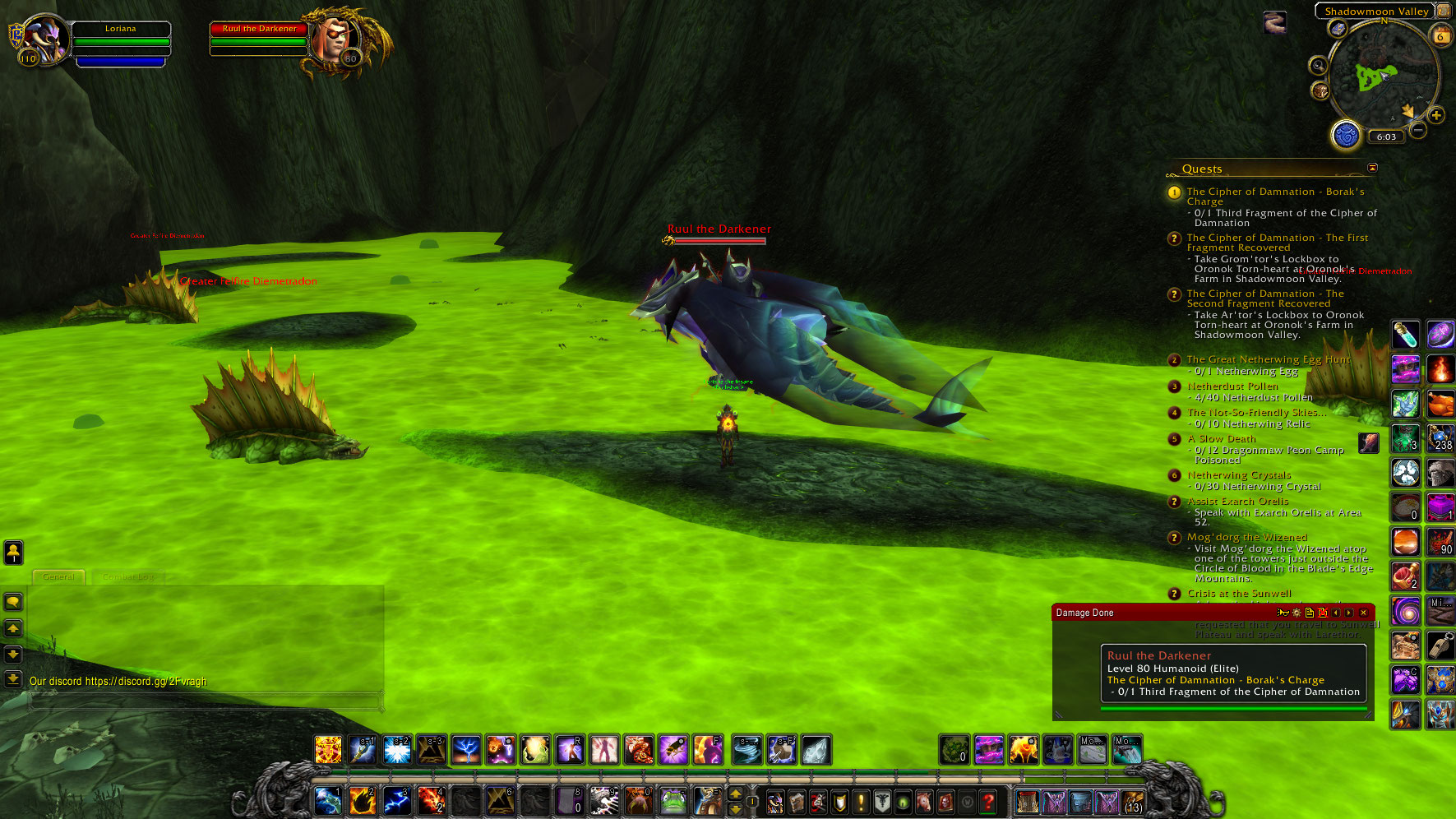 | Description | Hello again :) for quest " The Cipher of Damnation - Borak's Charge " ( https://www.wowhead.com/quest=10578/the-cipher-of-damnation-boraks-charge ) we need to kill https://www.wowhead.com/npc=21315/ruul-the-darkener . but he cant be killed here, he is not spawned where he should be ( screen 1 ), he is spawned here ( screen 2,3 ) but when i trying kill him, it said " Out of range " even when im right next to him. can you please respawn him on place where he belongs ? :) :D thanks | ||||