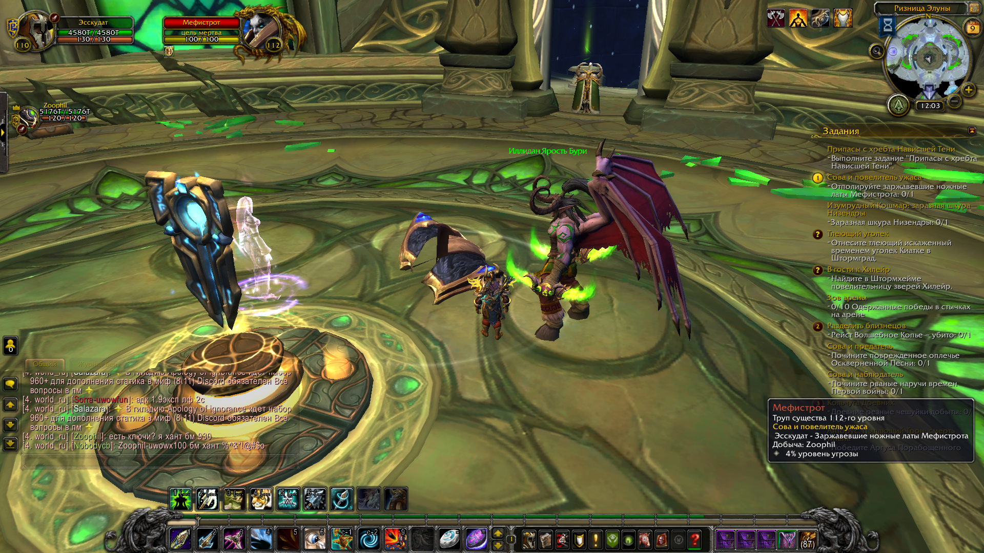 | Description | Выполняю квест на крафт легендарного снаряжения,необходимо пройти ключ Собор Вечной ночи и получить ножные латы с ласт босса Мефистрота,при открытии сундука данный предмет не выпадает,повторный проход ни к чему не приводит,труп не кликабельный | ||||