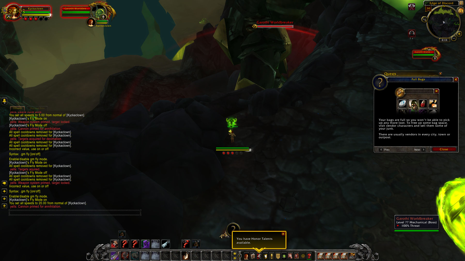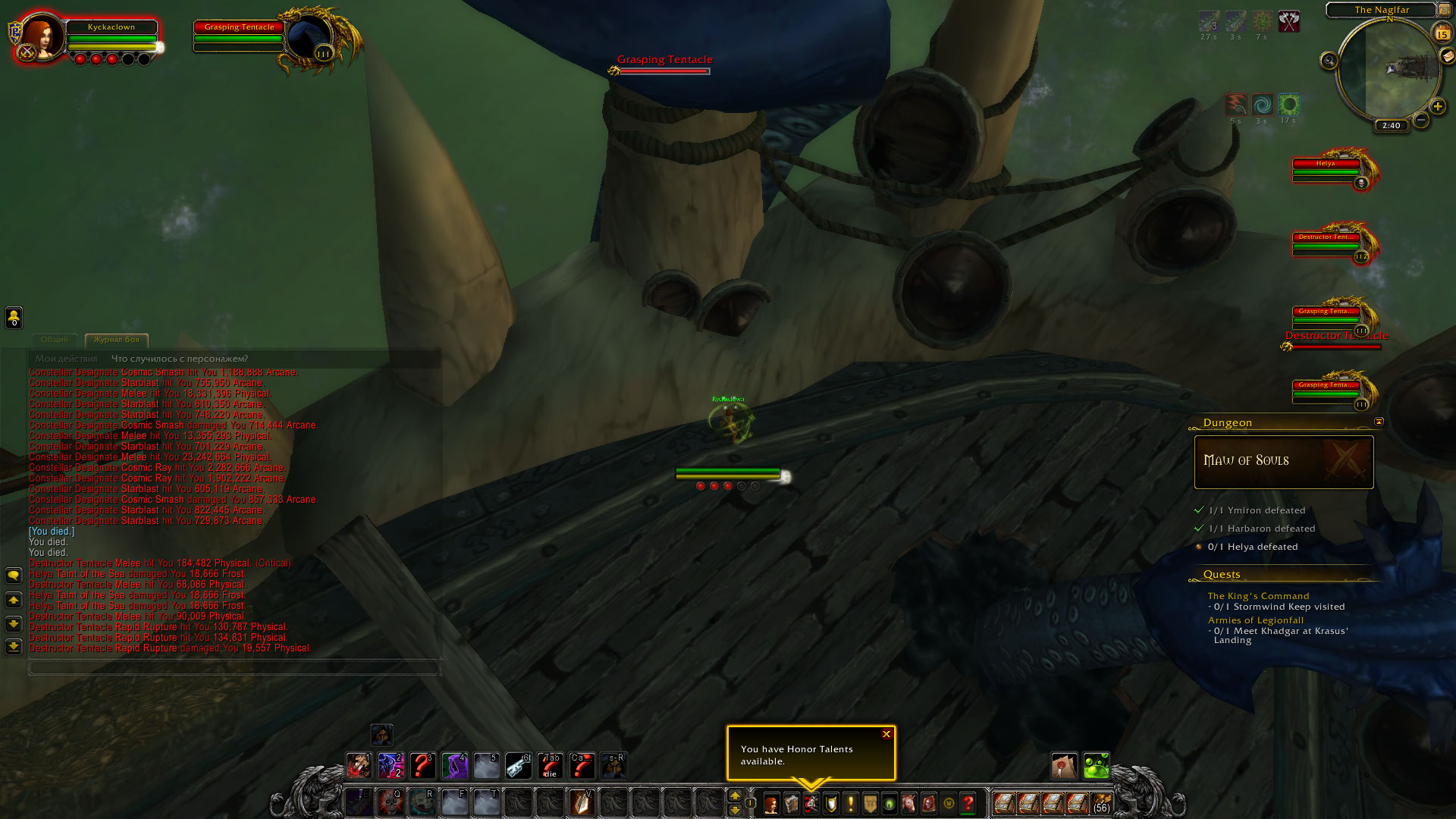 | Description | При использовании способности "Смерть с небес" на некоторых боссах кидает под текстуры. Ситуация осложняется тем, что даже умереть не получается из-за активной способности артефакта "Кошачьи рефлексы", падаешь пока не нащупаешь дно. Проявляется чаще если стоишь к боссу слишком близко, в основном это босс АПТ "Разрушитель миров Кин`гарота". В итоге приземляешься где-то очень глубокого под текстурами и ждешь окончания боя. Влияние большое, т.к. это основная способность спека, и при её использовании ты оказываешься бесполезным, в ожидании завершения боя. Босс Хелия, Утроба душ. 1. Подойти к щупальцам на первой фазе. 2. Использовать способность "Смерть с небес". | ||||