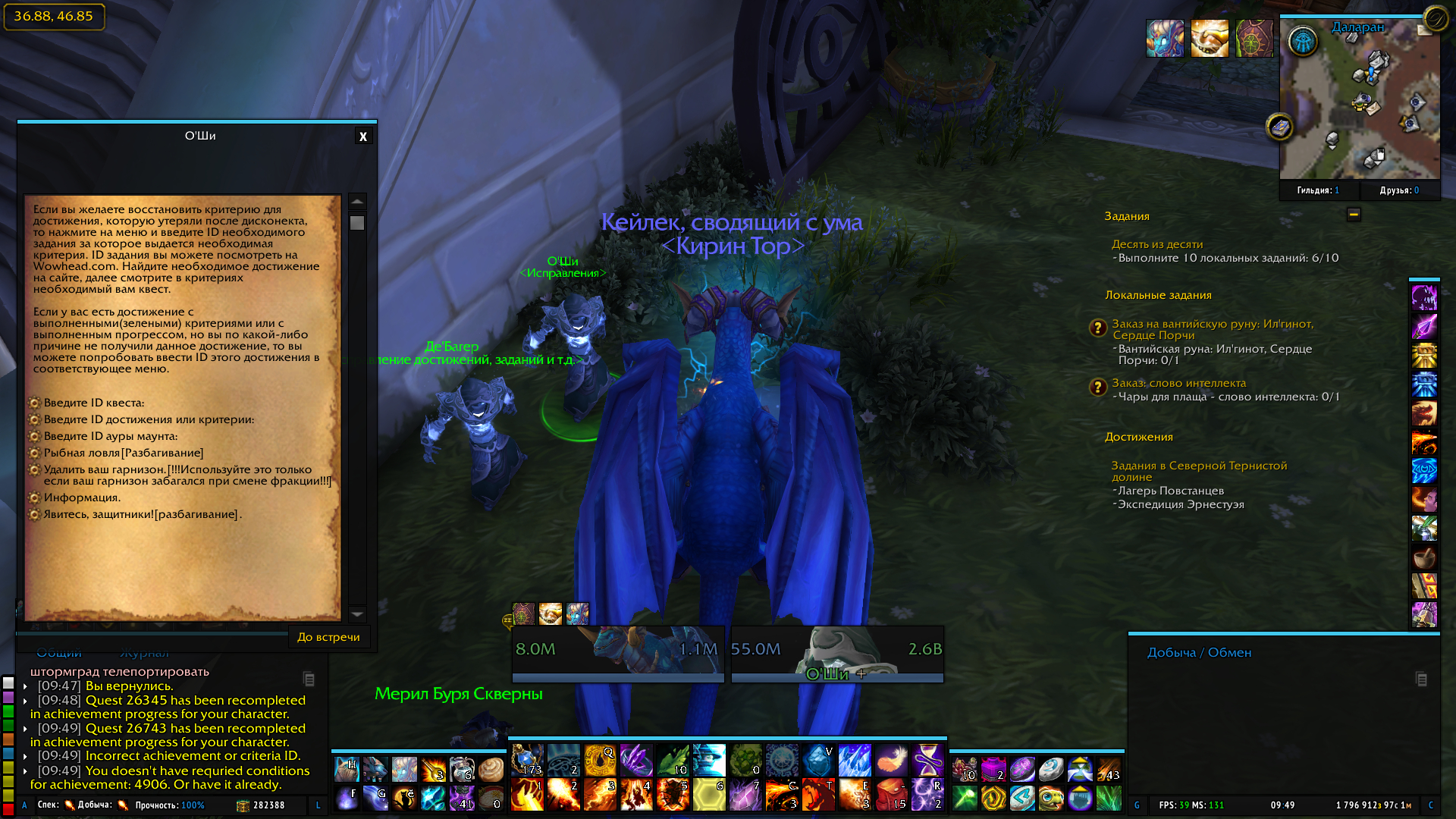 https://ru.wowhead.com/storyline/%D1%81%D0%B5%D0%B2%D0%B5%D1%80%D0%BD%D0%B0%D1%8F-%D1%82%D0%B5%D1%80%D0%BD%D0%B8%D1%81%D1%82%D0%B0%D1%8F-%D0%B4%D0%BE%D0%BB%D0%B8%D0%BD%D0%B0-414#quest примерно 37 квестов для Альянса и примерно 41 квест для Орды. можно выписать последовательность номеров квестов для Вашей фракции и все квесты перезачесть последовательно у Оши. А можно установить аддон QuestCompletist и запустить его из командной строки командой /qc откроется окно, в котором будет список квестов данной локации (естественно надо будет находиться в Северной Тернистой долине), в списке выполненные квесты будут отмечены зеленым. Найти в списке пропущенные квесты и выполнить их. У меня кстати было, что все квесты по этому аддону сделаны, а ачивка не засчиталась. Не в тернистой, в Запределье. Я перезачел все квесты по списку и получил все таки ачивку. |