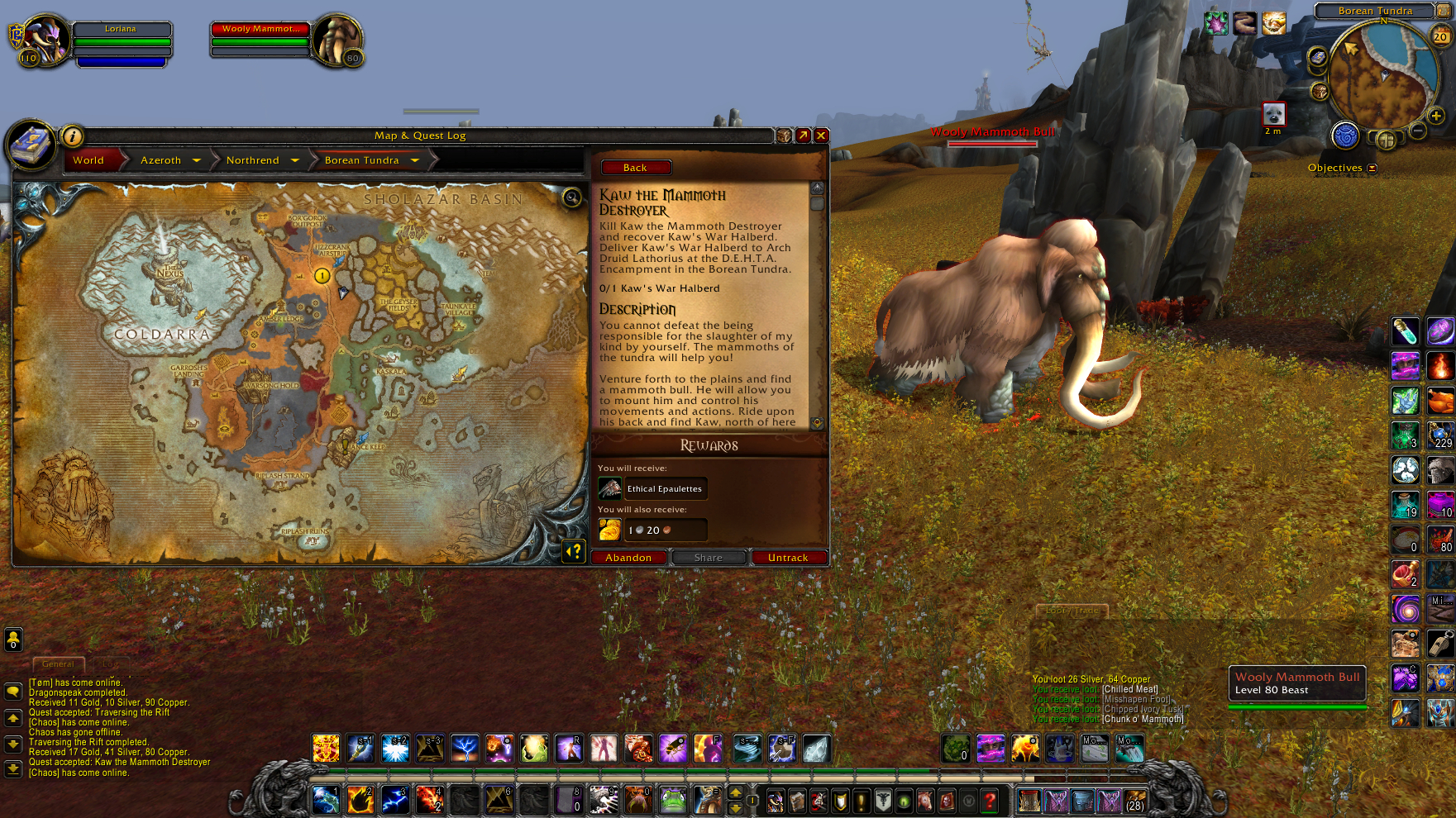 | Description | quest https://www.wowhead.com/quest=11879/kaw-the-mammoth-destroyer didnt work, after taking quest npc https://www.wowhead.com/npc=25743/wooly-mammoth-bull should turn neutral so i can ride him, but he is still hostyle so i cant start event with https://www.wowhead.com/npc=25802/kaw-the-mammoth-destroyer and kill him. | ||||