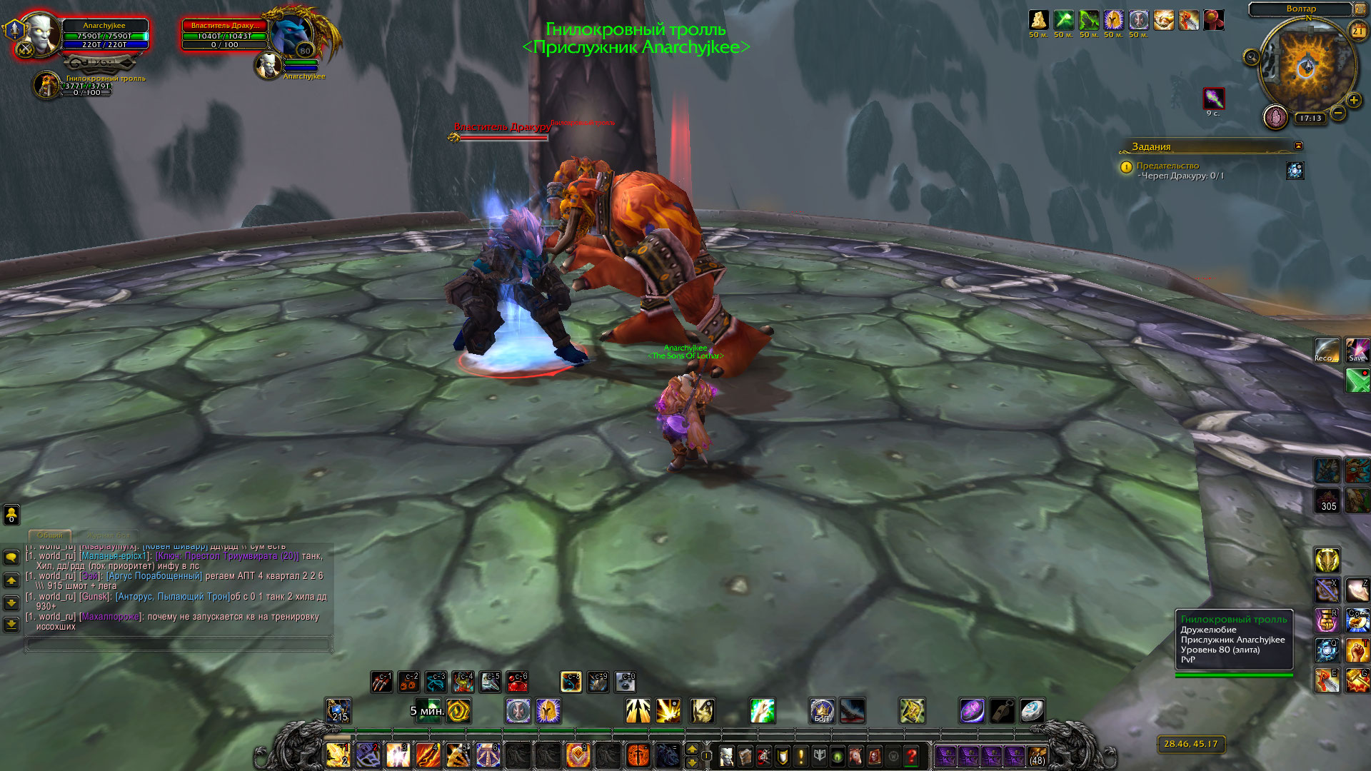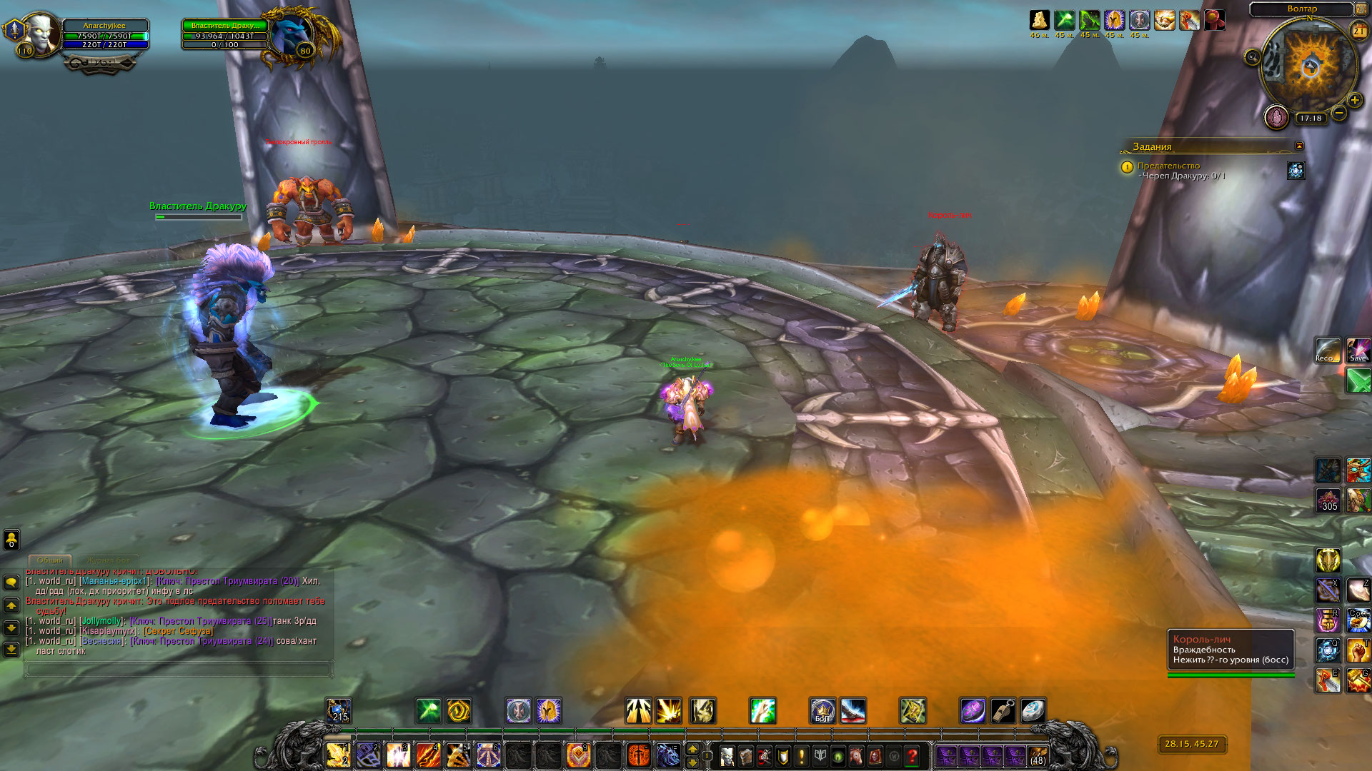 | Description | Не работает квест (https://ru.wowhead.com/quest=12713/%D0%BF%D1%80%D0%B5%D0%B4%D0%B0%D1%82%D0%B5%D0%BB%D1%8C%D1%81%D1%82%D0%B2%D0%BE#). В общем все делаю по правилам, подчиняю себе тролля, убиваю им Дракуру, опускаю хп до нужного уровня, появляется Король Лич, и все... дальше квест зависает а спустя 3-4 минуты вовсе все NPC пропадают... | ||||