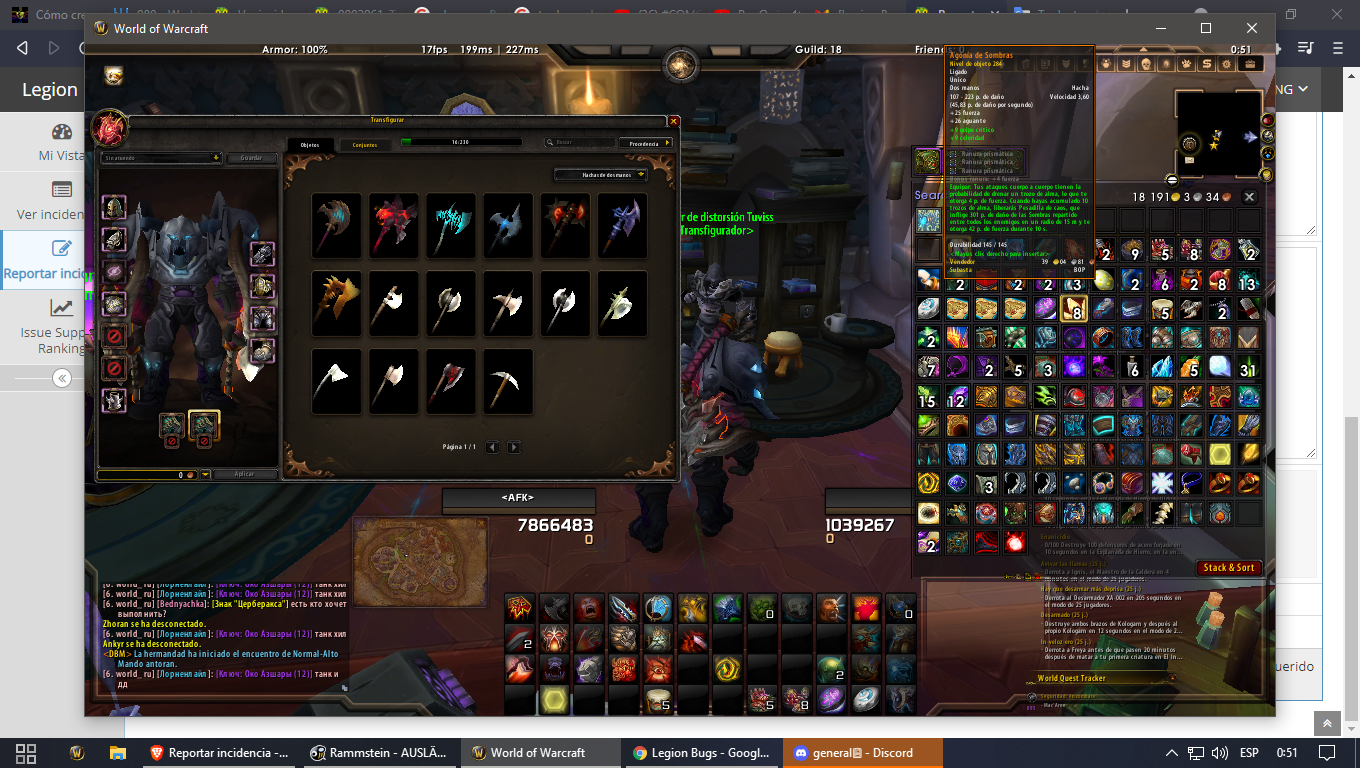| Description | Hello, a few days ago an incident came up which reported a problem with my agony of the shadows, it happened that when I put it on, the agony of the shadows disappeared out of nowhere and did not appear again in my bags nor did it reach the mailbox , I put it on because I wanted to enjoy my ax that I had earned that day and I wanted to transform it but according to they say that legendary items cannot be transformed, now, what I want is for you to please give me my agony of the shadows again , and that they also explain to me how to transform my agony of the shadows, since they say that it cannot be but here I have uploaded some images with people who have it transformed and the worst of the case is that they do not even have the achievement that they have taken it legally , Here I upload proof that I have the legal achievement, that I have the agony in my personal bag, in fact I was even testing it as a show, the last mission that gives the agony before and after finishing the entire sequence cia of the agony and the photos that a player in BG had the agony transfigured, please I ask for help for my agony that they return it to me and if it is possible to transform it as well, because I have a beautiful set that combines with my weapon | ||||