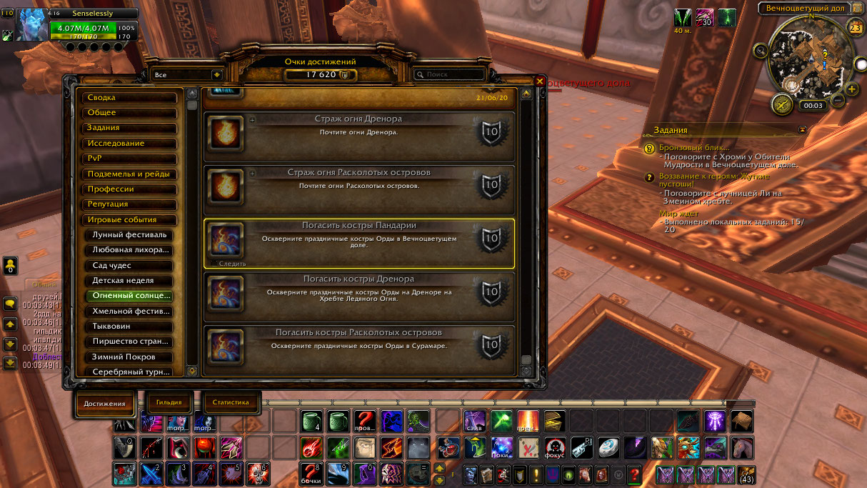 | Description | Не работают некоторые достижения категории "Игровые события: Огненный солнцеворот" для союзной расы(эльф бездны) невозможно выполнить достижение: https://ru.wowhead.com/achievement=11276/ https://ru.wowhead.com/achievement=11283/ https://ru.wowhead.com/achievement=8042/ Нпс Альянса не дает кв на поклонение костру а костры орды недоступны для их тушения. | ||||