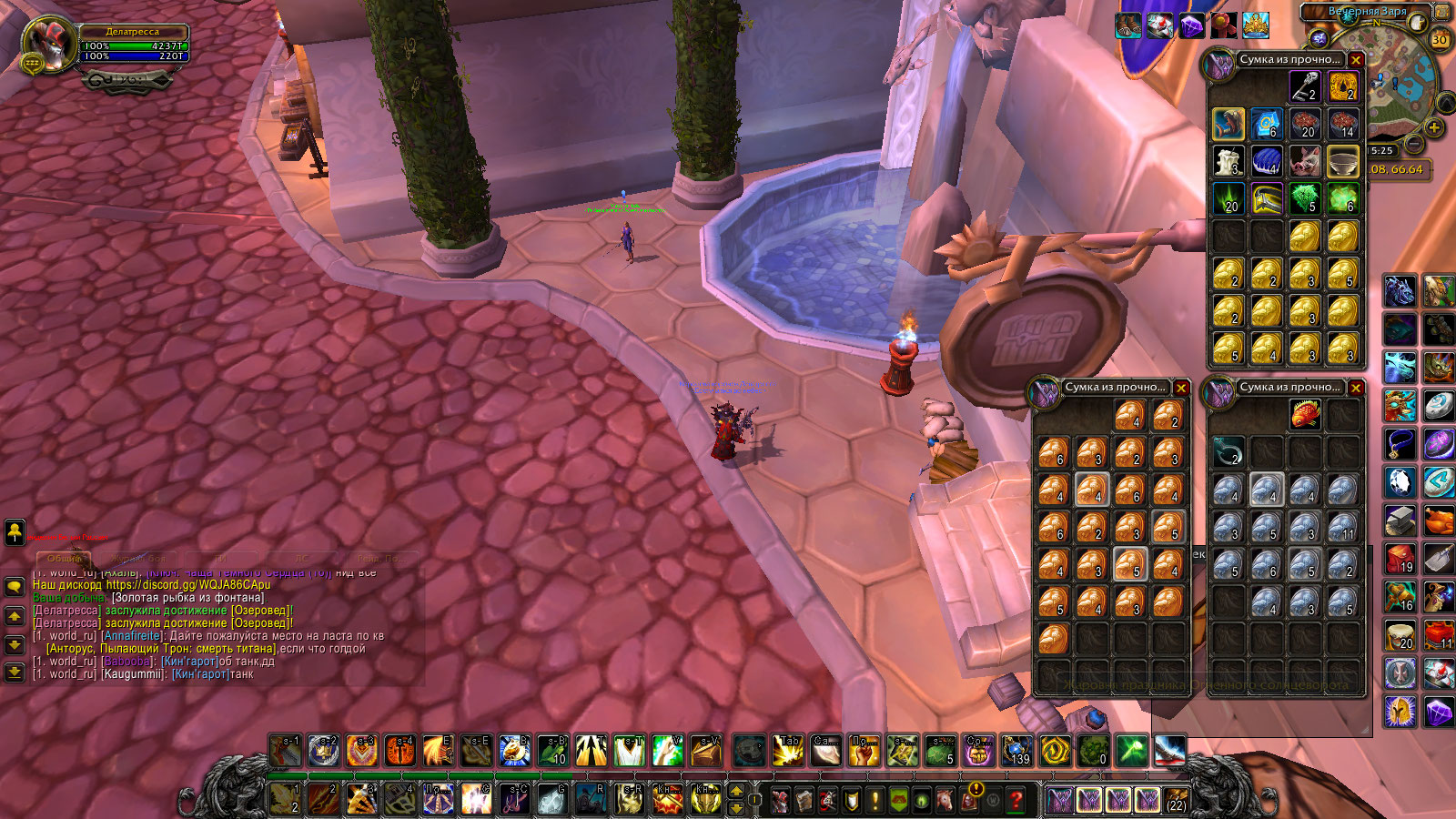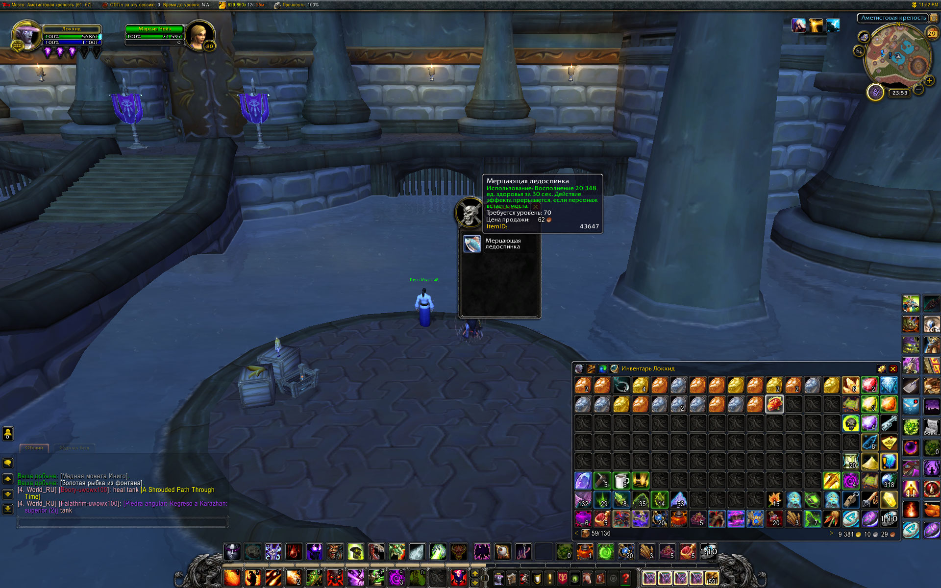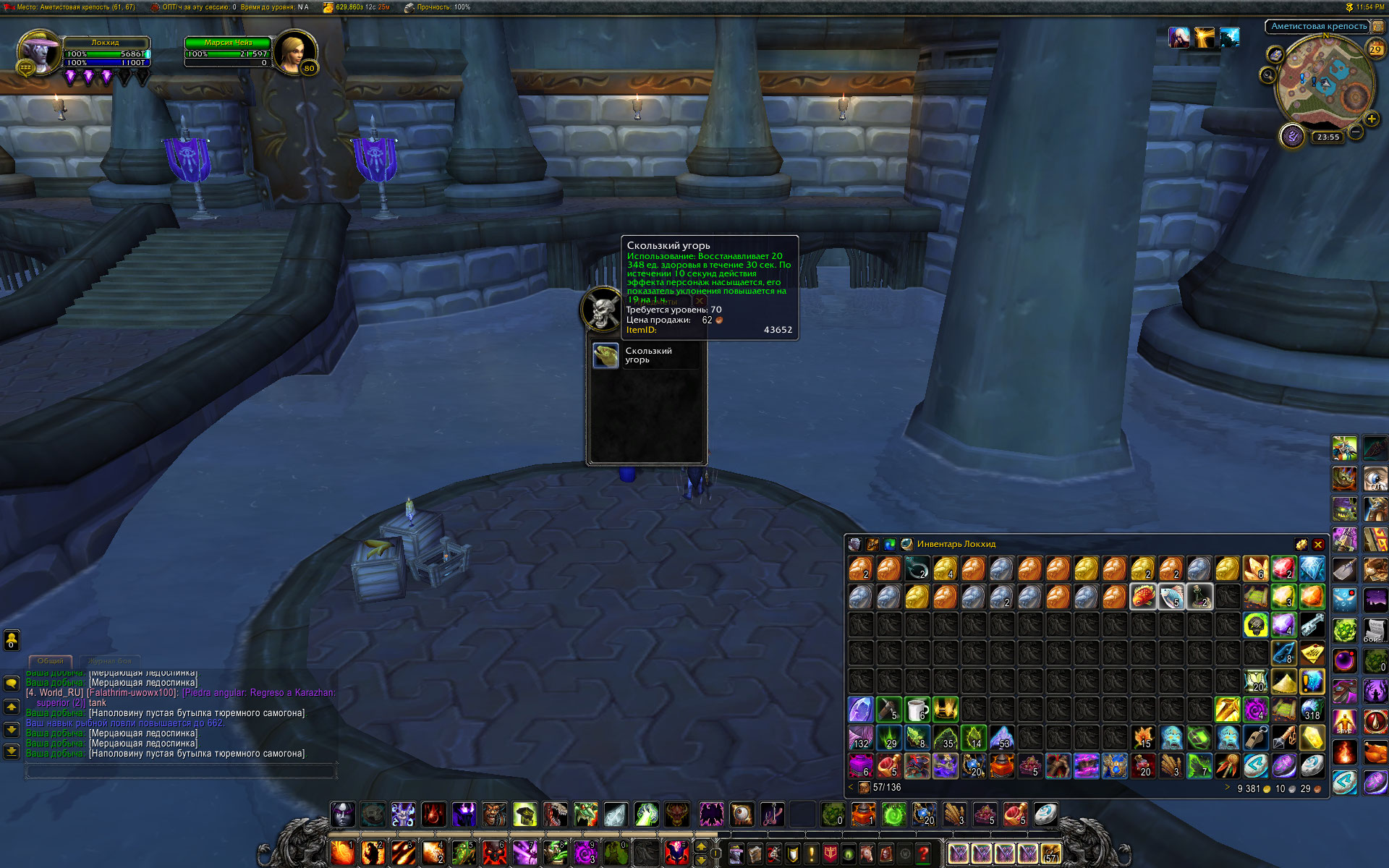 :) не пробовали ловить "Золотая рыбка из фонтана" в фонтане? вместе с монетками? Скользкий угорь: От Tosya 25.11.2012 (Обновление 5.0.5) Ловится в Даларане у входа в Аметистовую крепость. Мерцающая ледоспинка: там же. Или в Клоаке. Хотя нет. В Клоаке только сточный карп и волшебный пожиратель. и крыса. В то же время шанс на вылов https://ru.wowhead.com/item=43646 на мой взгляд сильно занижен. Одна рыбка на 32 монетки и 3 единицы мусора. То есть шанс меньше 3%, тогда как на вовхеде прописан шанс около 15% Шансы для угря и ледоспинки примерно соответствуют, даже немного завышены. 5 ледоспинок, 1 угорь, 3 бутыли самогона, 1 мусор с десяти забросов возле АМК. WoWScrnShot_063021_025323.jpg (491,934 bytes) WoWScrnShot_063021_025147.jpg (486,454 bytes) |