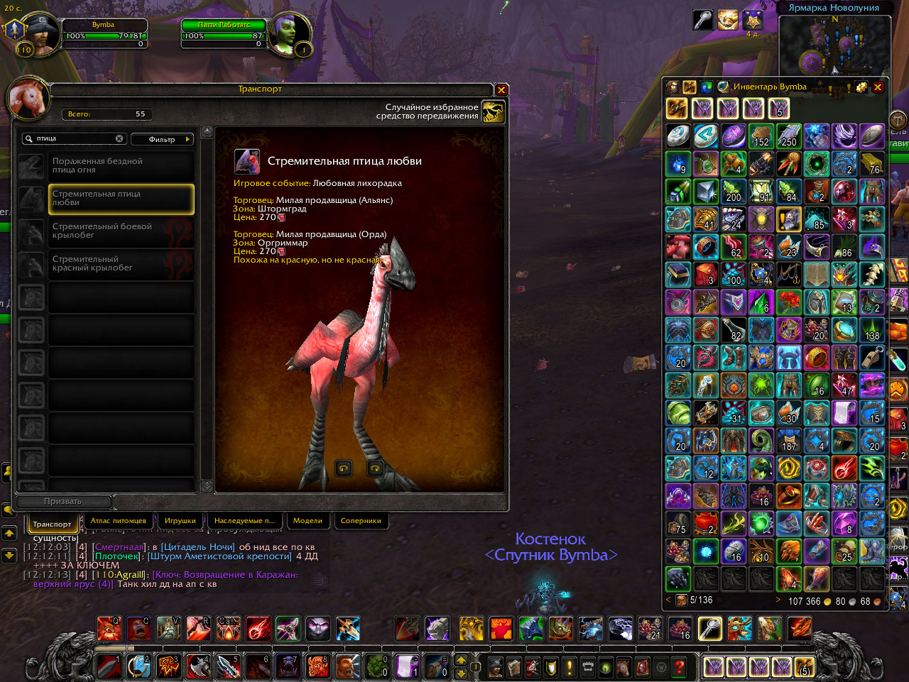| Description | Во время Любовной лихорадки не успел собрать нужно количество валюты для покупки Стремительная птица любви и купил ее на аукционе. https://ru.wowhead.com/item=72146 https://ru.wowhead.com/love-is-in-the-air | ||||