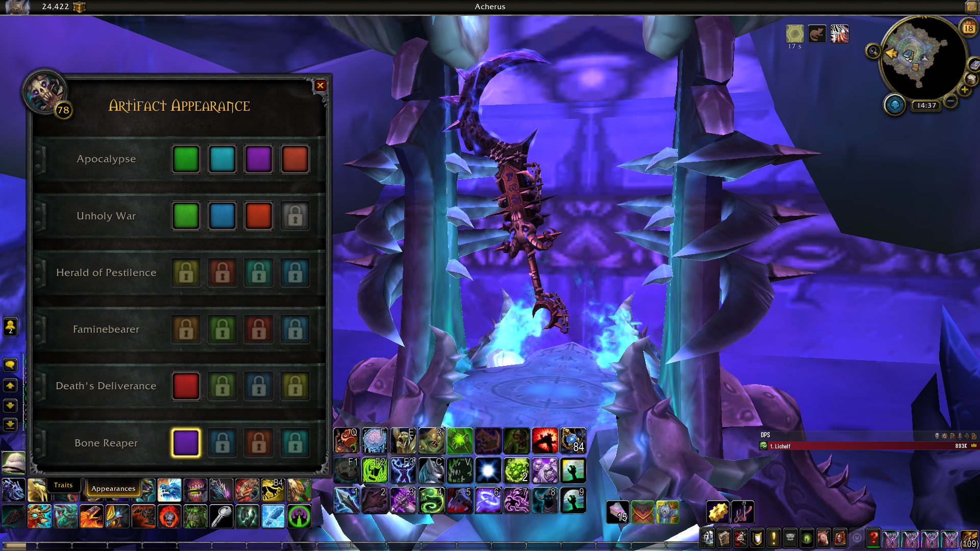 You have not received https://www.wowhead.com/item=139548/the-bonereapers-hook When you knock out and study the item, there will be an achievement and the colors will work https://youtu.be/Yq8OXKJ8x5o?t=1 43648 - is responsible for the work of appearance Your appearance appeared to be a bug. You shouldn't have it After studying the item, everything will work. |