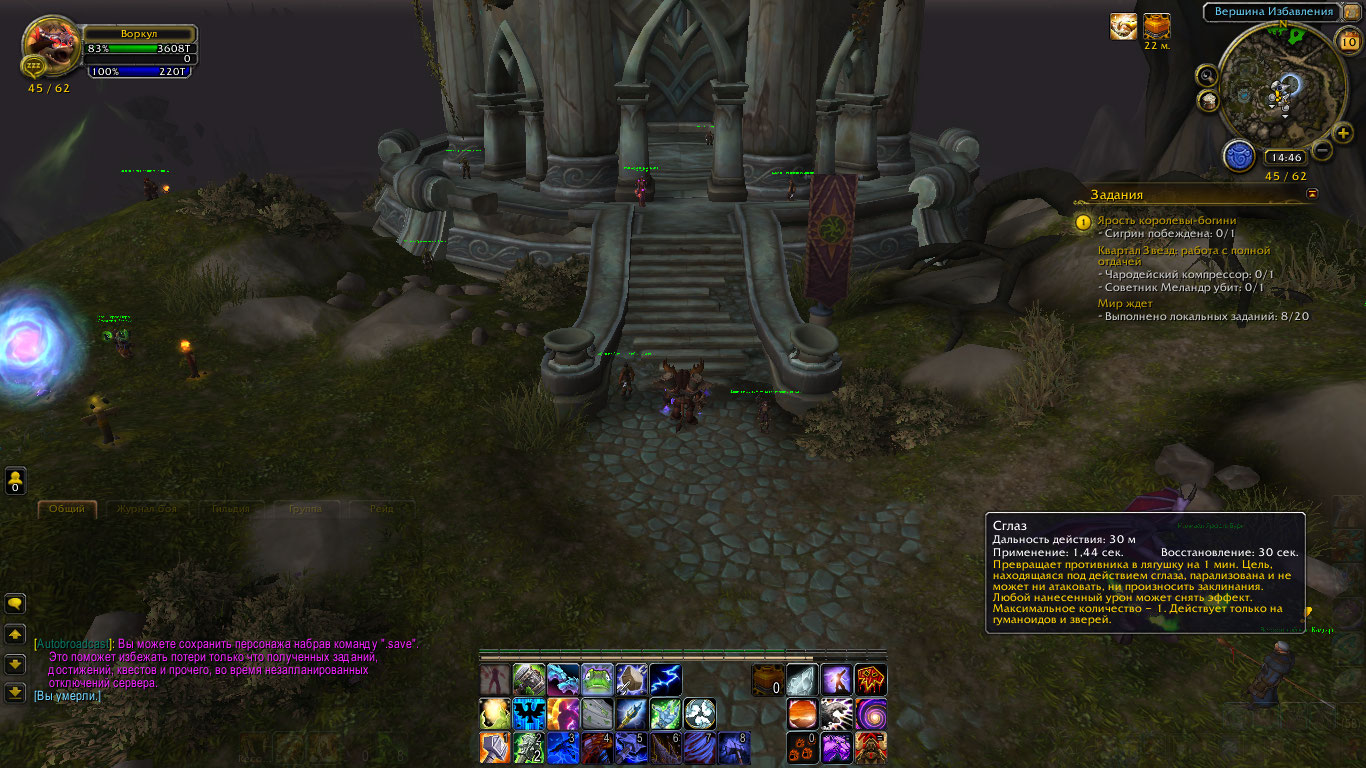 | Description | 1. https://ru.wowhead.com/spell=51514/сглаз 2. Проходил испытание в башне магов на энх-шамана https://ru.wowhead.com/quest=45526/ярость-королевы-богони, накладывал сглаз на https://ru.wowhead.com/npc=116484, но во-первых она не была парализована и во-вторых кастовала скилы. | ||||