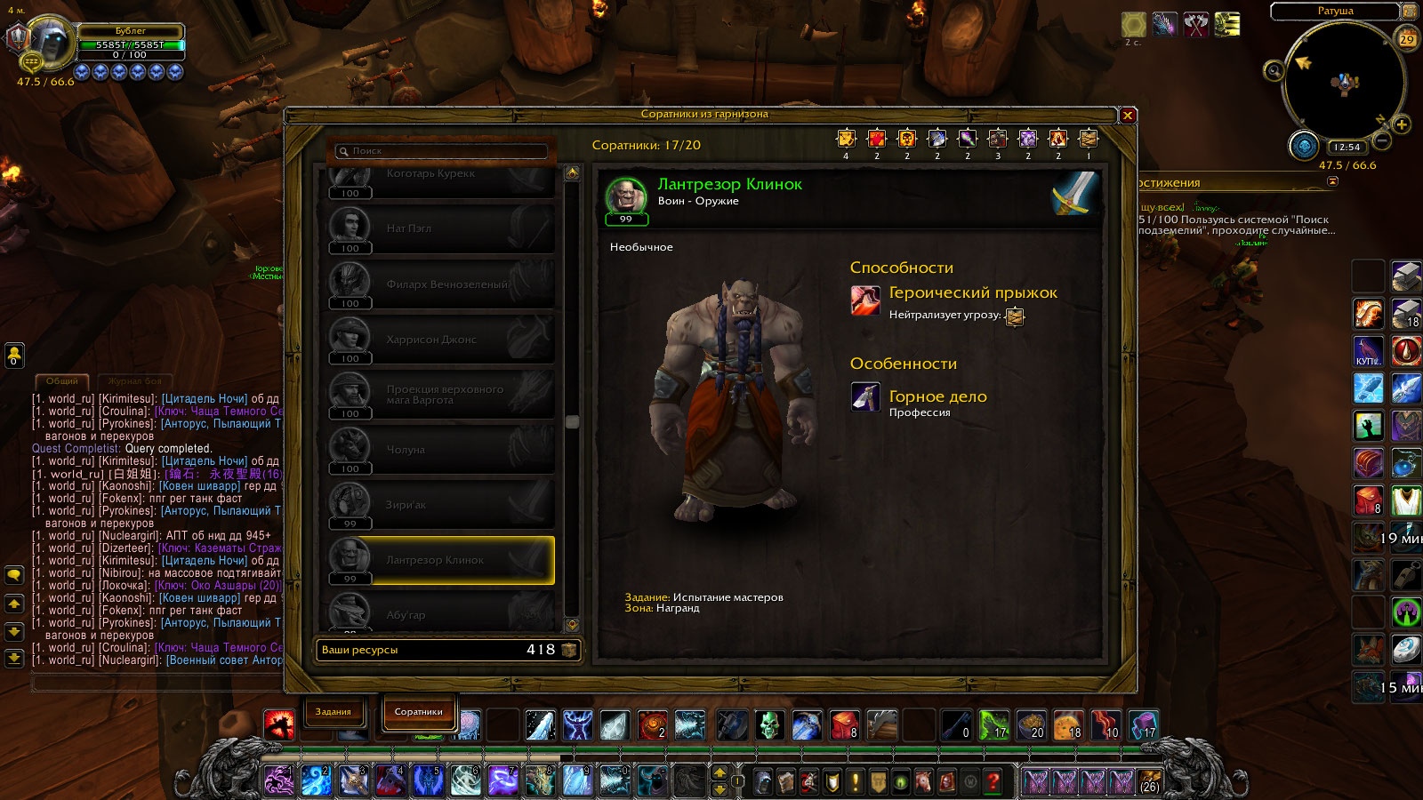 Да ВЫ просто издеваетесь (((тут нужно соратников набрать по абилкам так мало того что на СЕРВЕРЕ дают ОДНОГО на весь АКК ((кому повезет сделать первым))так есще и второй соратник ПРОСТО забил нахрен https://ru.wowhead.com/quest=34770/%D1%87%D0%B5%D1%81%D1%82%D1%8C-%D0%BC%D0%B0%D1%81%D1%82%D0%B5%D1%80%D0%B0-%D0%BA%D0%BB%D0%B8%D0%BD%D0%BA%D0%B0#comments-выполнил цепочку -Лантрезор стоит около деревушки с квестом над башкой -чего проще то бери его тепленьким-берем квест и тут же сдаем и ВУАЛЯ -Отморозь на ВСЮ морду задание сдано и соратника НЕТ в ганизоне WoWScrnShot_072921_155253.jpg (460,877 bytes) WoWScrnShot_072921_155428.jpg (384,690 bytes) |