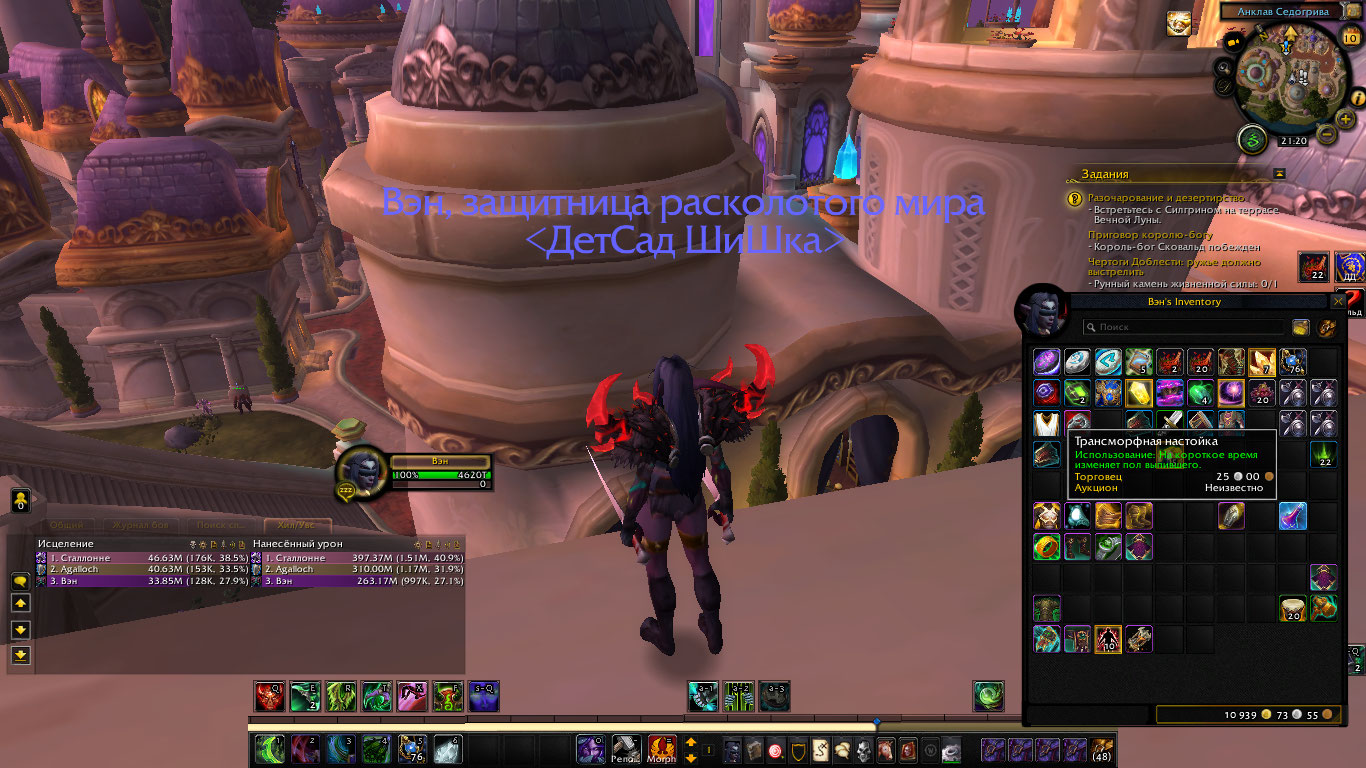 | Description | https://ru.wowhead.com/item=112090 На короткое время изменяет пол выпившего. У нас же настойка просто даёт Баф на несколько минут при этом пол не меняет | ||||