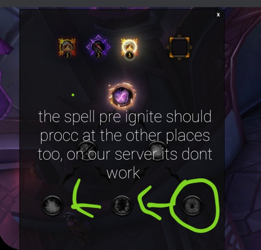 | Description | hello i have used over 400 relics in the nethertiegel on the "legion test" server to combine https://www.wowhead.com/spell=238055/pre-ignited with dark side but it proc only on the light side not even in the middle or left , although it should be random | ||||