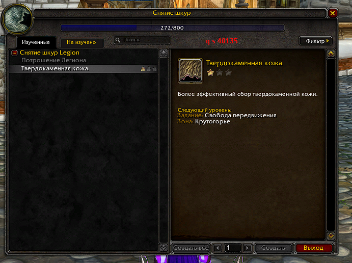 Три года фарма итема на первую звезду в горном деле - на залежи силового камня. Итема нет :), к этому времени зато есть уже 5 рудокопов с прокачаной до капа профой, но ни на одном так и не выпал итем на 1 звезду. тестеры отвечают, что шанс 0.7%... собрано тысяч 15-20 силового камня. Рандом, он такой... А насчет итема на снятие шкур - первую звезду для кожи получил, когда суммарно кожи и чешуи было снято около 5к, профа уперлась в лимит 753 и не двигалась уже дальше. Три звезды пока что так и не получены в некоторых аспектах - шкура с Низендры и еще в каком то рейде не получилось. |