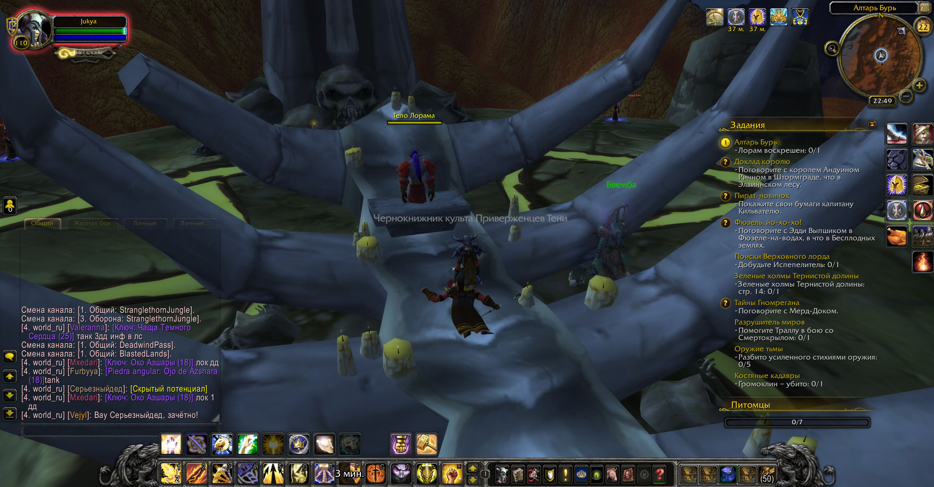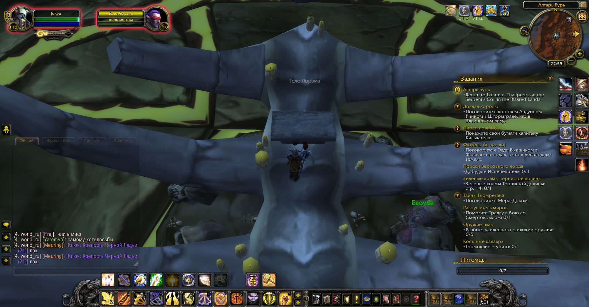 | Description | https://ru.wowhead.com/quest=26162/алтарь-бури во время выполнения, при размещении тела Лорама, он просто появляется и стоит на месте, никаких скриптов не запускается, его можно убить, тогда квест засчитается, но сдать его будет невозможно Как он должен работать: https://yandex.ru/video/preview/?text=алтарь%20бурь&path=wizard&parent-reqid=1629673238020206-8167327656140497369-vla1-2557-vla-l7-balancer-exp-8080-BAL-8349&wiz_type=vital&filmId=6863071477193688211 | ||||