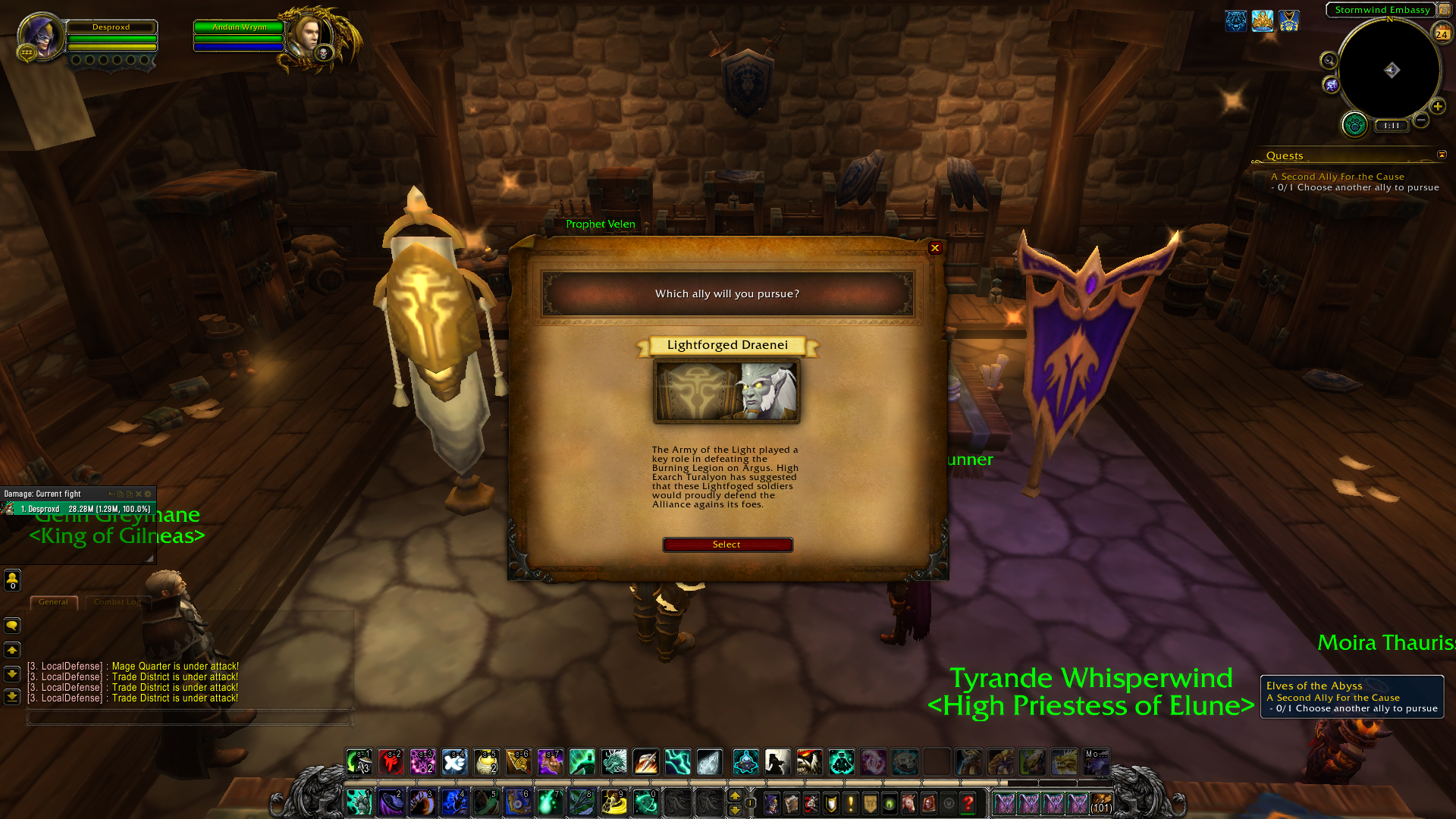 | Description | I'm unable to choose void elfs as another ally during quest "A Second Ally For the Cause" in Stormwind, I can only choose Lightforged Draenei which I choosed at first while choosing first ally. When the window with options on which ally will I pursue, the only option I have are lighforged draeneis, so I don't even have an option to choose void elves because they are simply not there. And when I try to choose lightforged draenei, I can't because I already did them, so for me there is no way to do void elves. | ||||