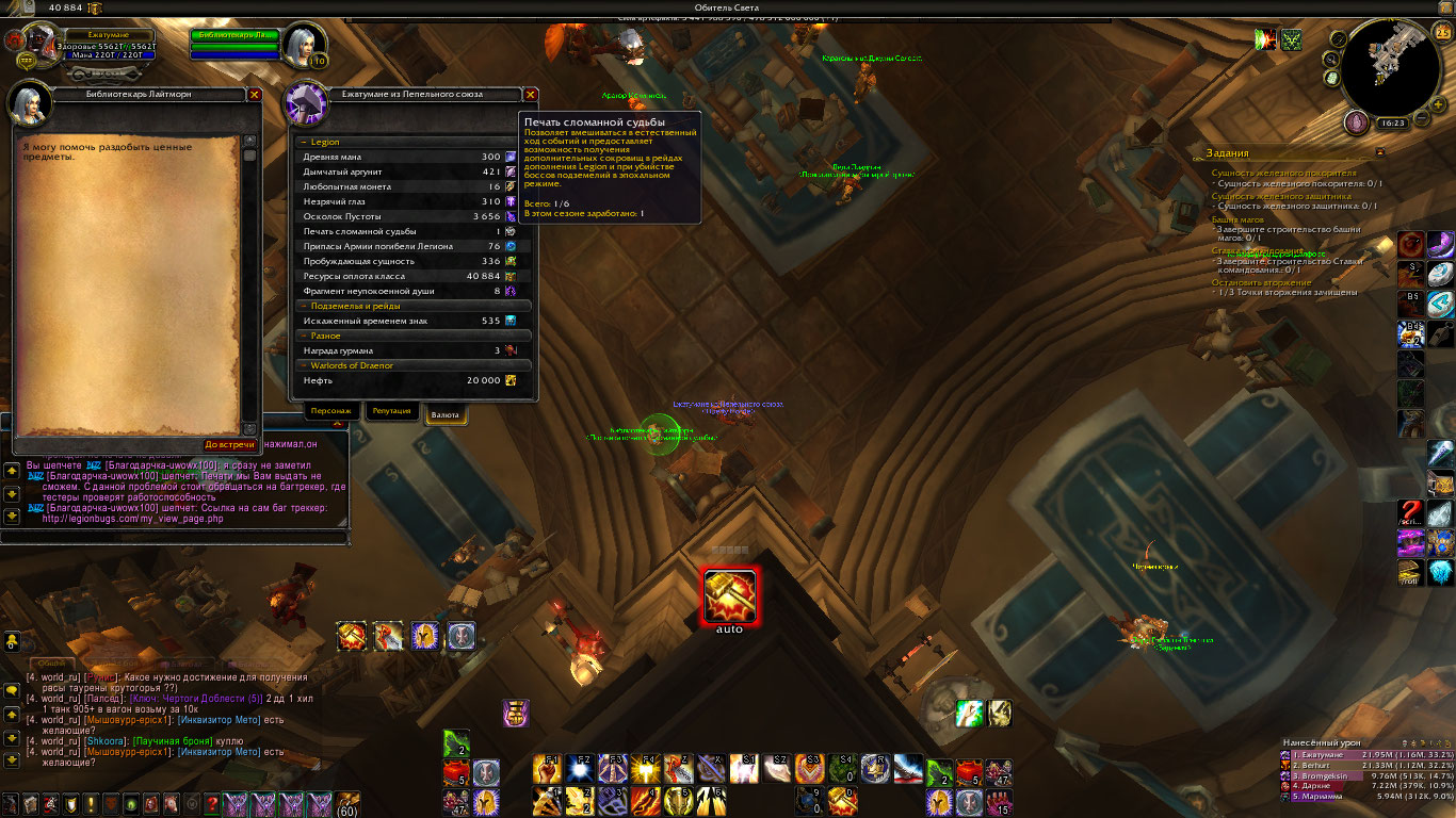Так же на моем персонаже нет квестов на печати за золото и другие валюты персонажа. |