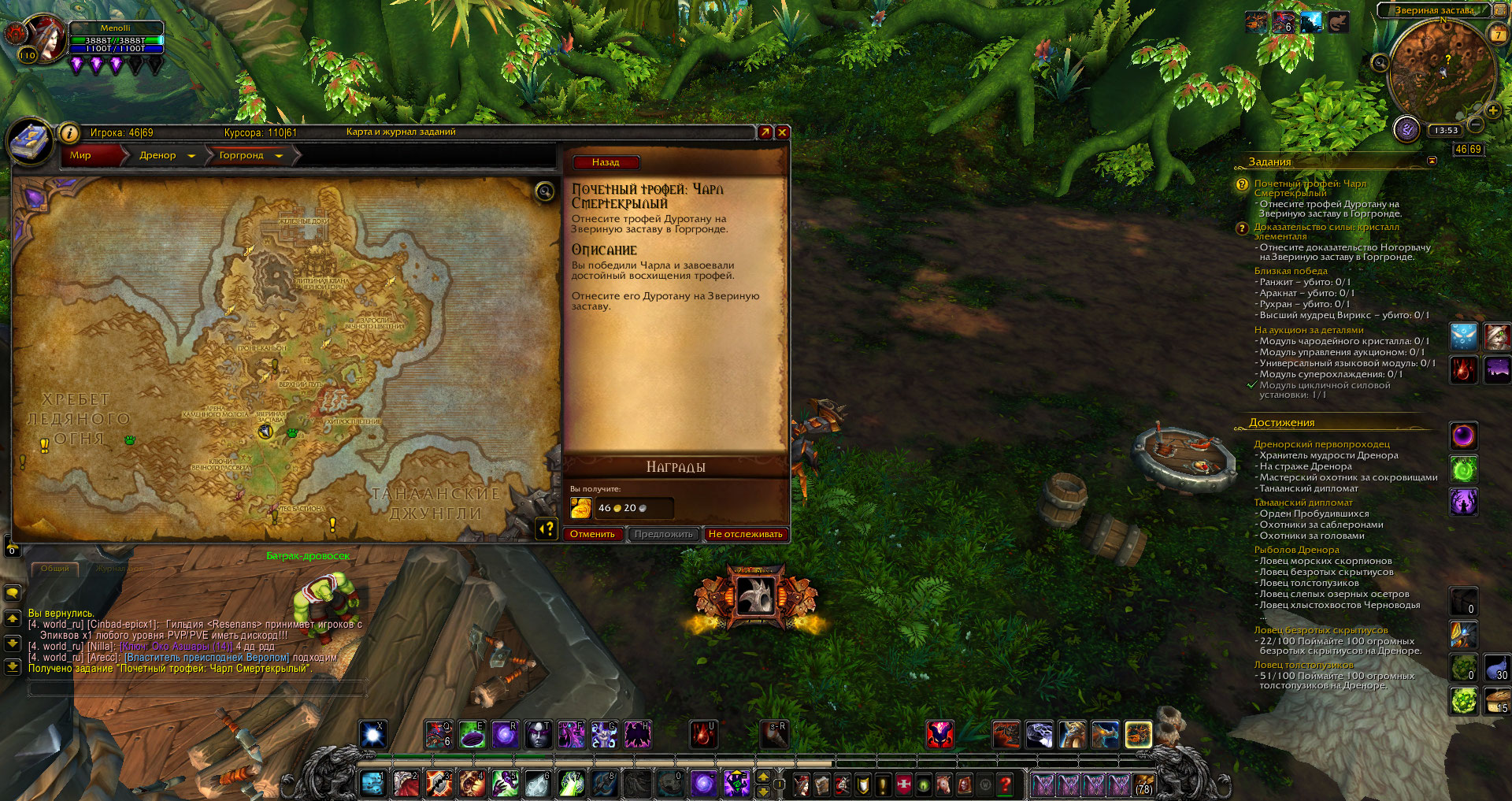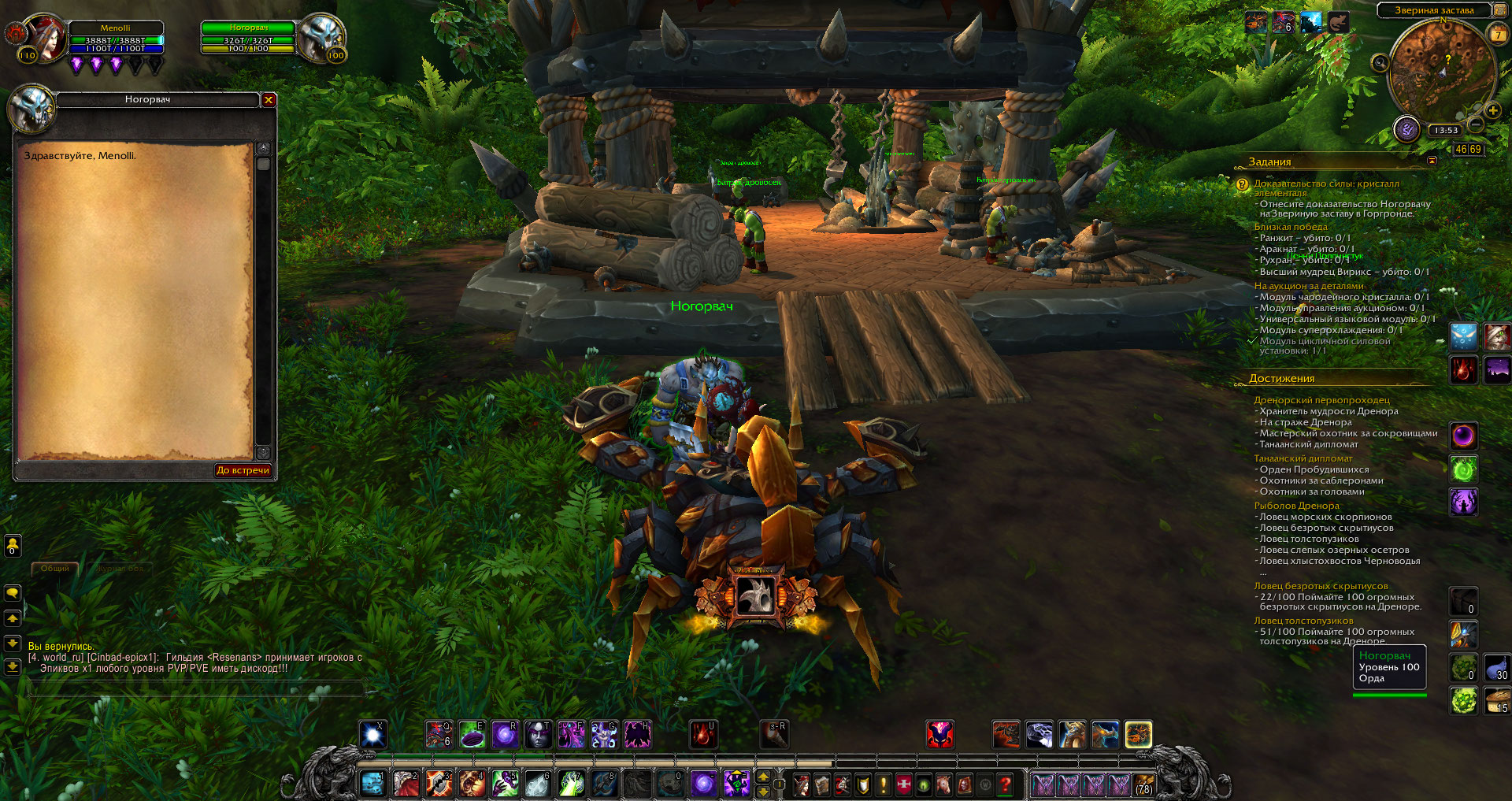 | Steps To Reproduce | Взяла квест на открытие Горгронда в гарнизоне - сдала квест, делаю основную цепочку - ставлю гарнизон, выбираю лесопилку - продолжаю делать цепочку - получаю итем, дающий задание - беру это задание (например, "Почетный трофей: Чарл Смертекрылый", велено сдать Дуротану на Звериной Заставе) - прихожу на Заставу - обнаруживаю, что там никого нет - грущу. Лезу сюда, вижу, что Дренор активно делается и ошибок там куча, ищу свою - не нахожу - снова грущу - решаюсь написать об этом вот. На всякий случай смиряюсь и придумываю, в какое ещё старое дополнение сунуться за питомцами и достиженьками. | ||||