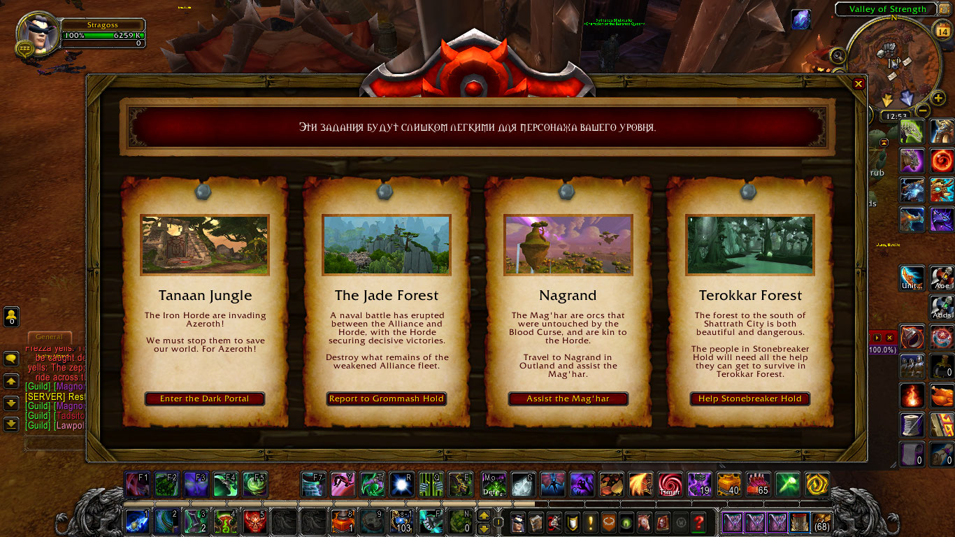 | Description | The mission I need to accept does not appear on the ogrimmar mission board, it is called "Guardians of Hyjal: The Call of the Elders". I already tried to complete all those that appear but I reached a part that I can no longer accept more missions and I can not continue. I would be very grateful if you would help me achieve this mission | ||||