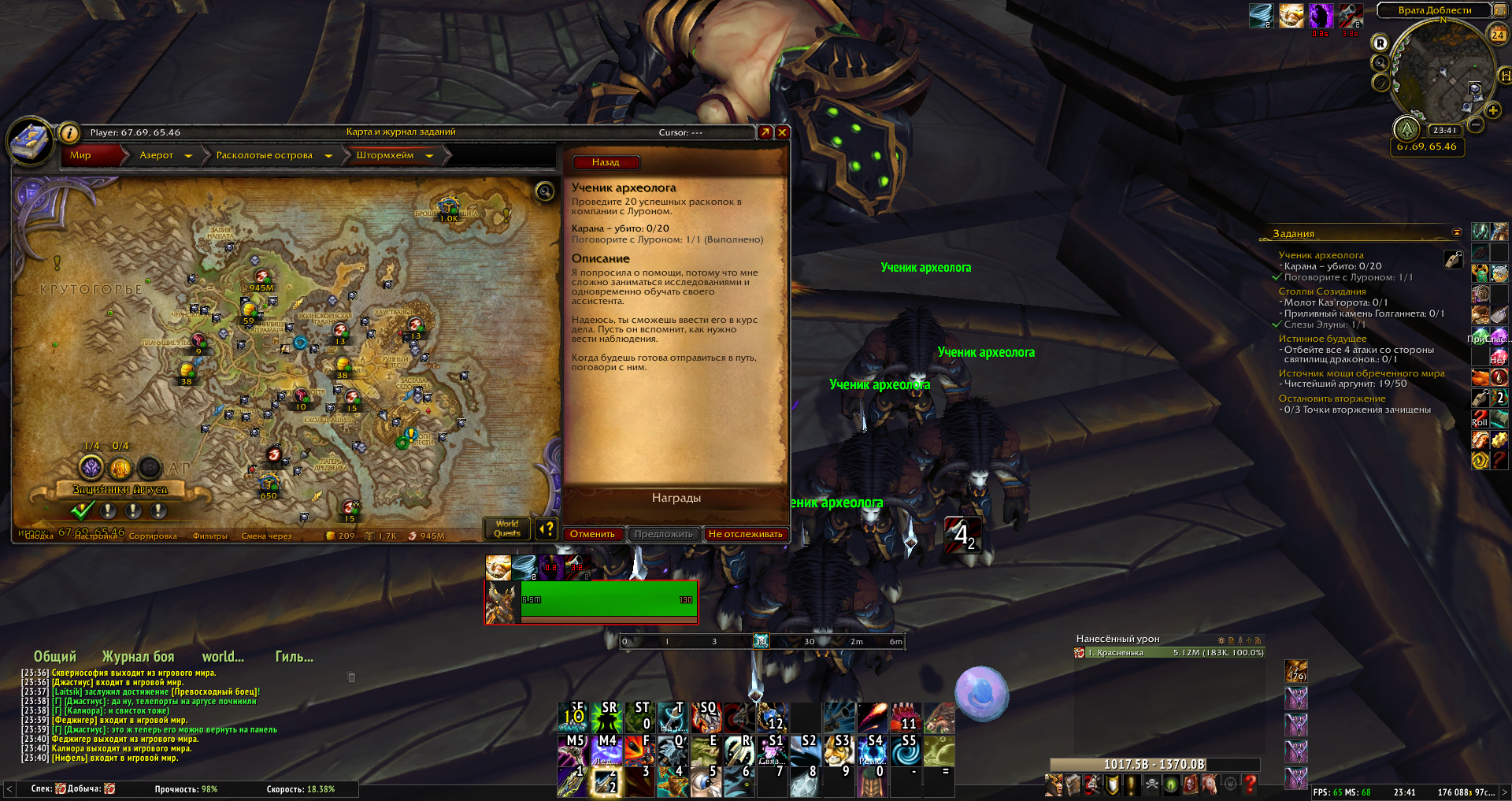 | Description | https://ru.wowhead.com/quest=41187/%D1%83%D1%87%D0%B5%D0%BD%D0%B8%D0%BA-%D0%B0%D1%80%D1%85%D0%B5%D0%BE%D0%BB%D0%BE%D0%B3%D0%B0 Вместо 20 раскопок с Луроном стоит Карана - убито: 0/20. Завершение раскопки не меняет счетчик. | ||||