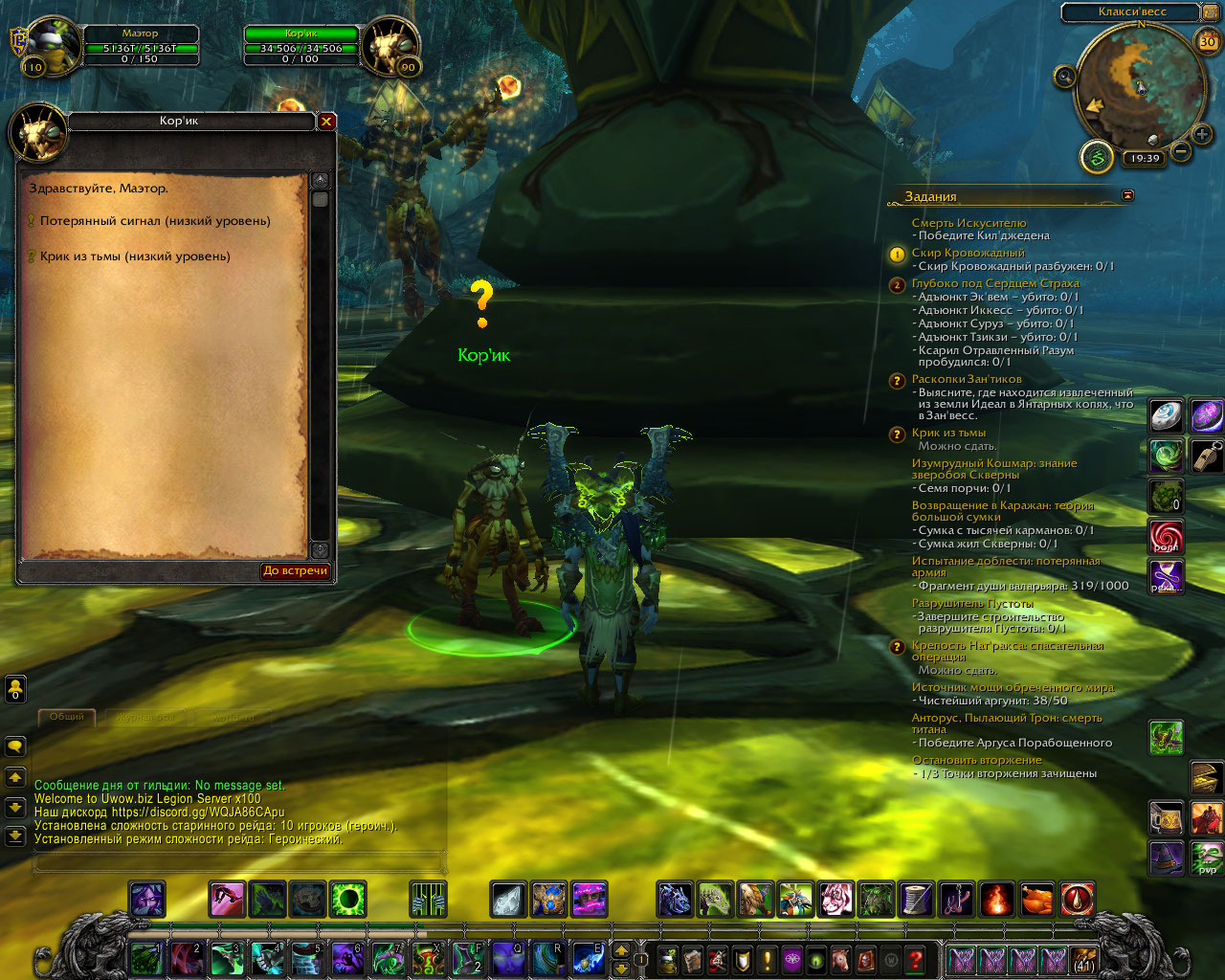 | Description | Реалм Legion x100 Персонажи Мулань и Маэтор нпс Кор'ик отсутствует в локации Клакси.весс в Жутких пустошах. Квест "Крик из тьмы" невозможно сдать или получить изза ранее выполненного квеста "Потерянный сигнал" в ходе которого Кор'ик умирает по сюжету. | ||||