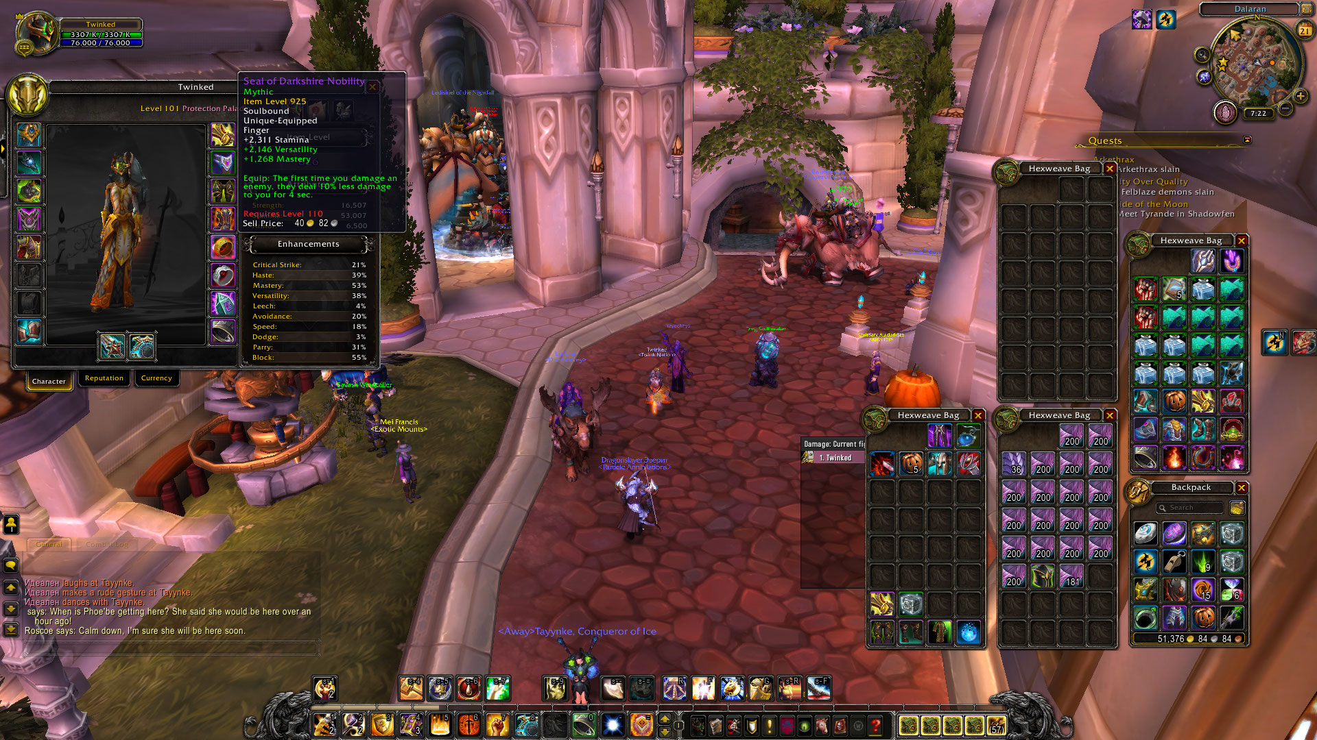 | Steps To Reproduce | Donate, buy the legendary helmet "Sauran's Resolve", the 925 ring "Seal of Darkshire Nobility", and the 965 trinket "Raven Eidolon" on a level 101 paladin. Equip the items, then logout and back in, then enter and instance or switch specs. All items will be removed (or may even just disappear) and then they require level 110 and you can no longer equip them. | ||||