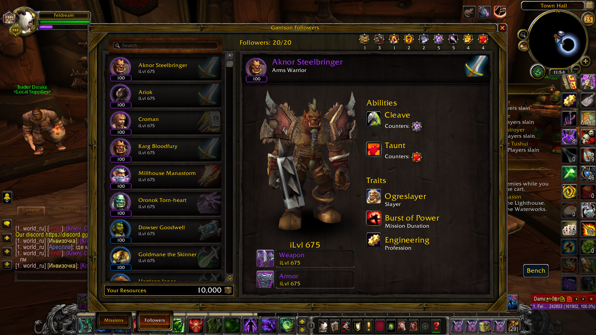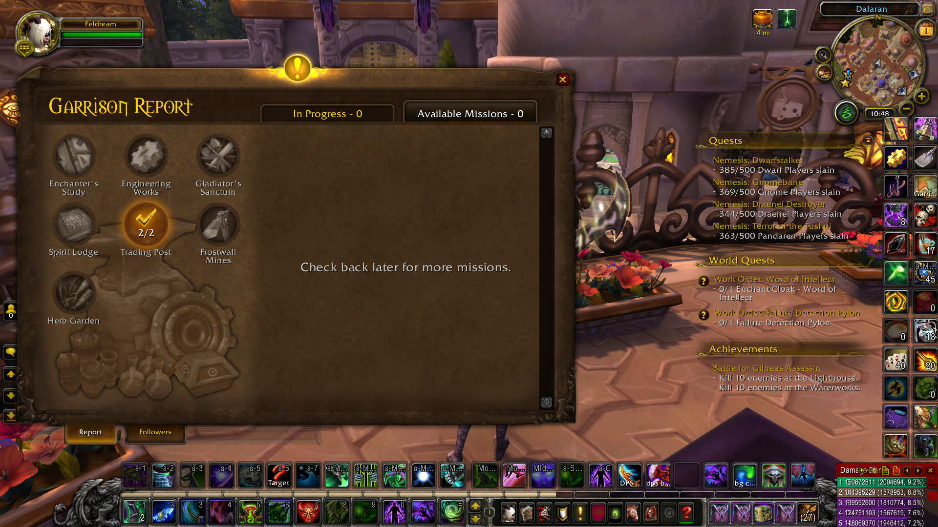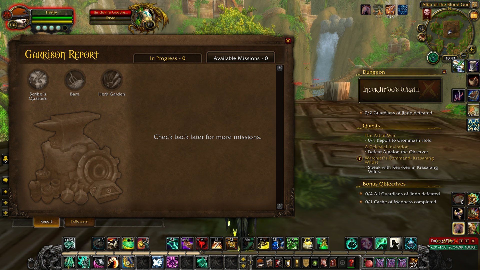 | Description | No followers missions in the garrison report list, Sometimes not a single mission for are week or 2 weeks. As far as i understood the garrison should have more then 10 missions available each day even 26 missions. Sadly here you can be lucky to get 1 mission per week. https://www.wowhead.com/guides/garrisons/warlords-of-draenor-garrison-missions-guide I also cover all the conditions and requirements (16 x lvl100 - 675ilvl followers) to unlock all rare missions in the garrison but nothing happens... still 0 missions. | ||||