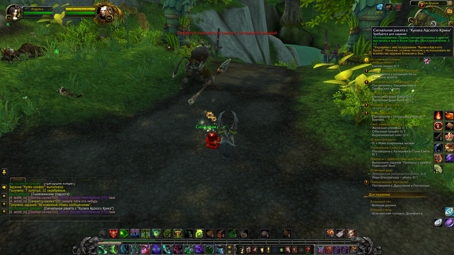 | Description | Пандария, Нефритовый лес. Не работает квест "Мгновенный обмен сообщениями" ID 29936, квестовый предмет Сигнальная ракета с "Кулака Адского Крика" Item 76305 не активируется. | ||||