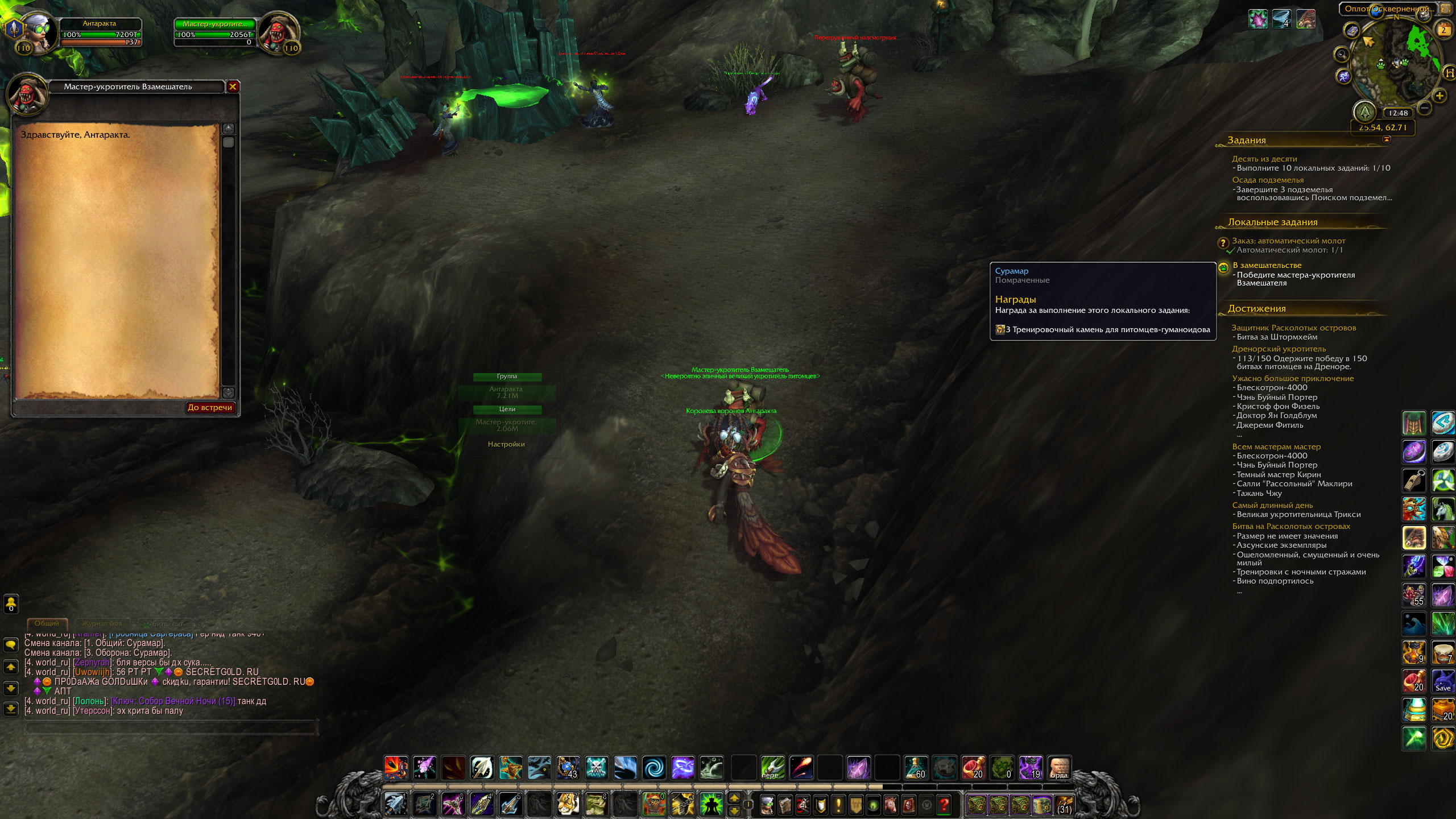 Так же проблемы с локалками даларана: типа https://ru.wowhead.com/quest=40298/%D0%BD%D0%BE%D1%87%D1%8C-%D0%B1%D0%B8%D1%82%D0%B2%D1%8B-%D1%81%D1%8D%D1%80-%D0%B3%D0%B0%D0%BB%D1%8C%D0%B2%D1%81%D1%82%D0%BE%D0%BD выдает надпись "Поверхность для битвы питомцев слишком неровная"