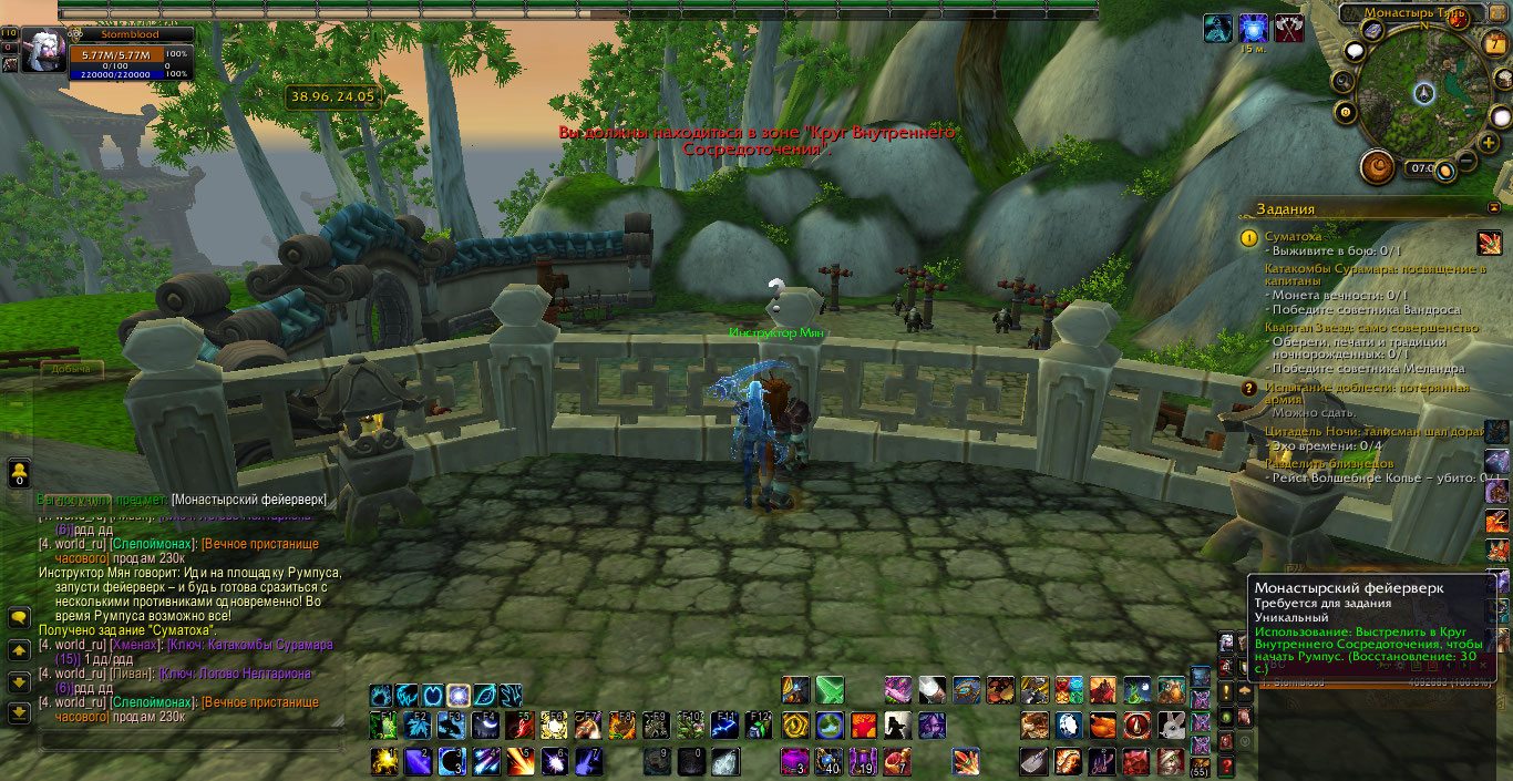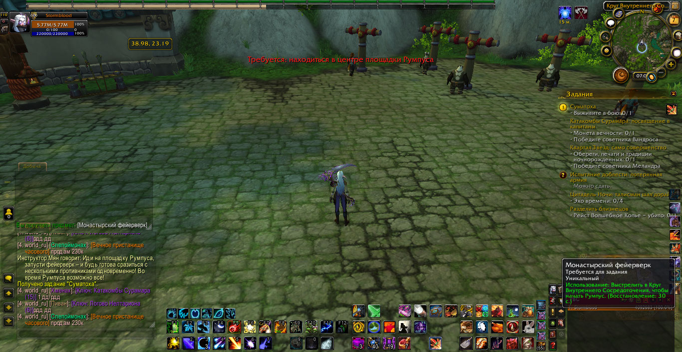 | Description | Квест https://ru.wowhead.com/quest=29637/суматоха Ракета не запускается, просит быть в Круге внутреннего сосредоточения. Будучи в Круге внутреннего сосредоточения, он просит находиться в центре площадки рампуса. | ||||