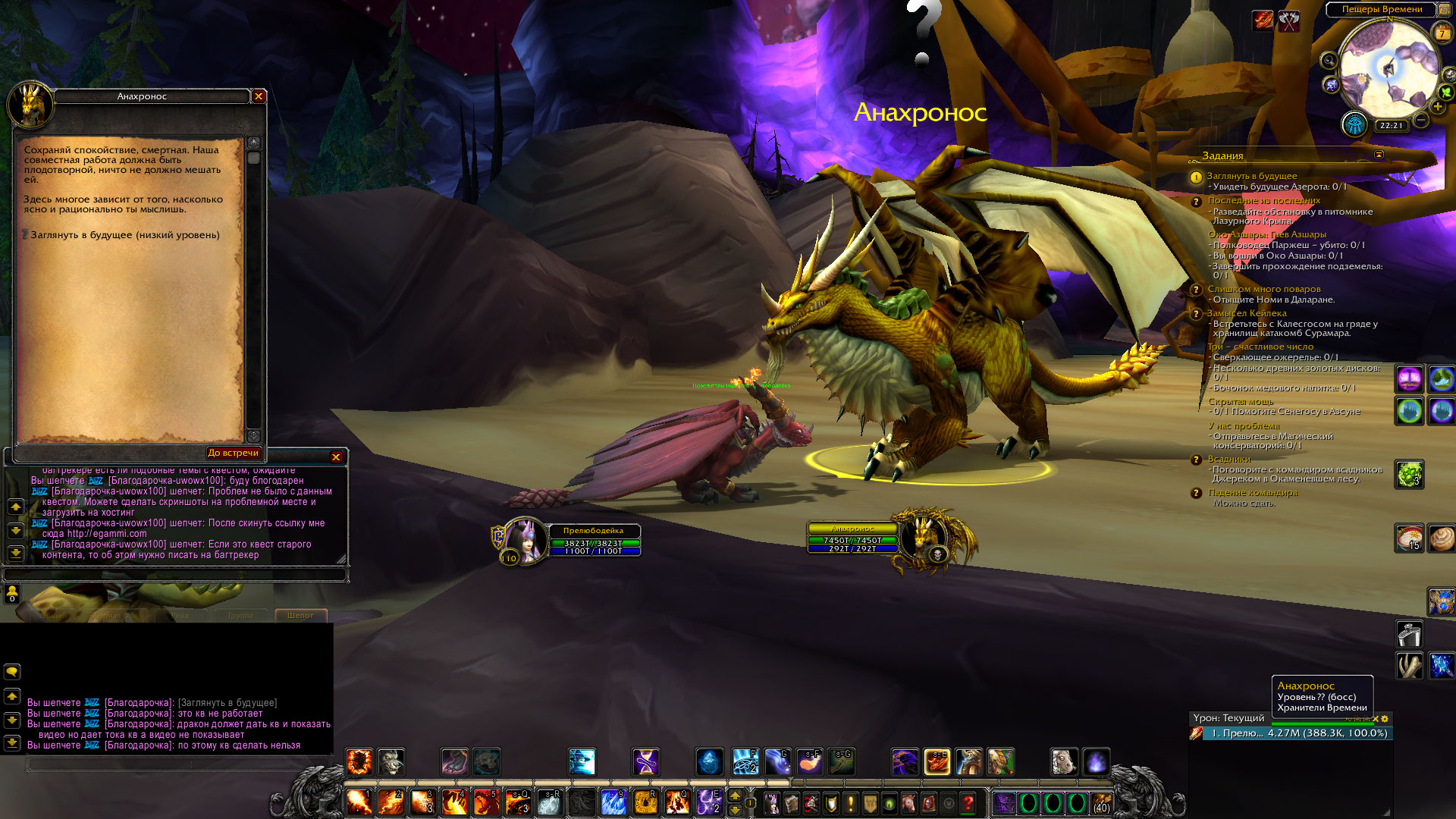 | Description | Дракон в пещере времени дает кв [Заглянуть в будущее] и должен показать видео но видео нету и кв соответственно нельзя сделать без него | ||||