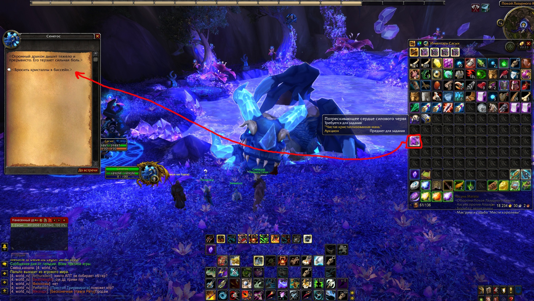 | Description | После получения кристаллов, не активируется кнопка - <Бросить кристаллы в бассейн.> тем самым невозможно завершить квест. | ||||