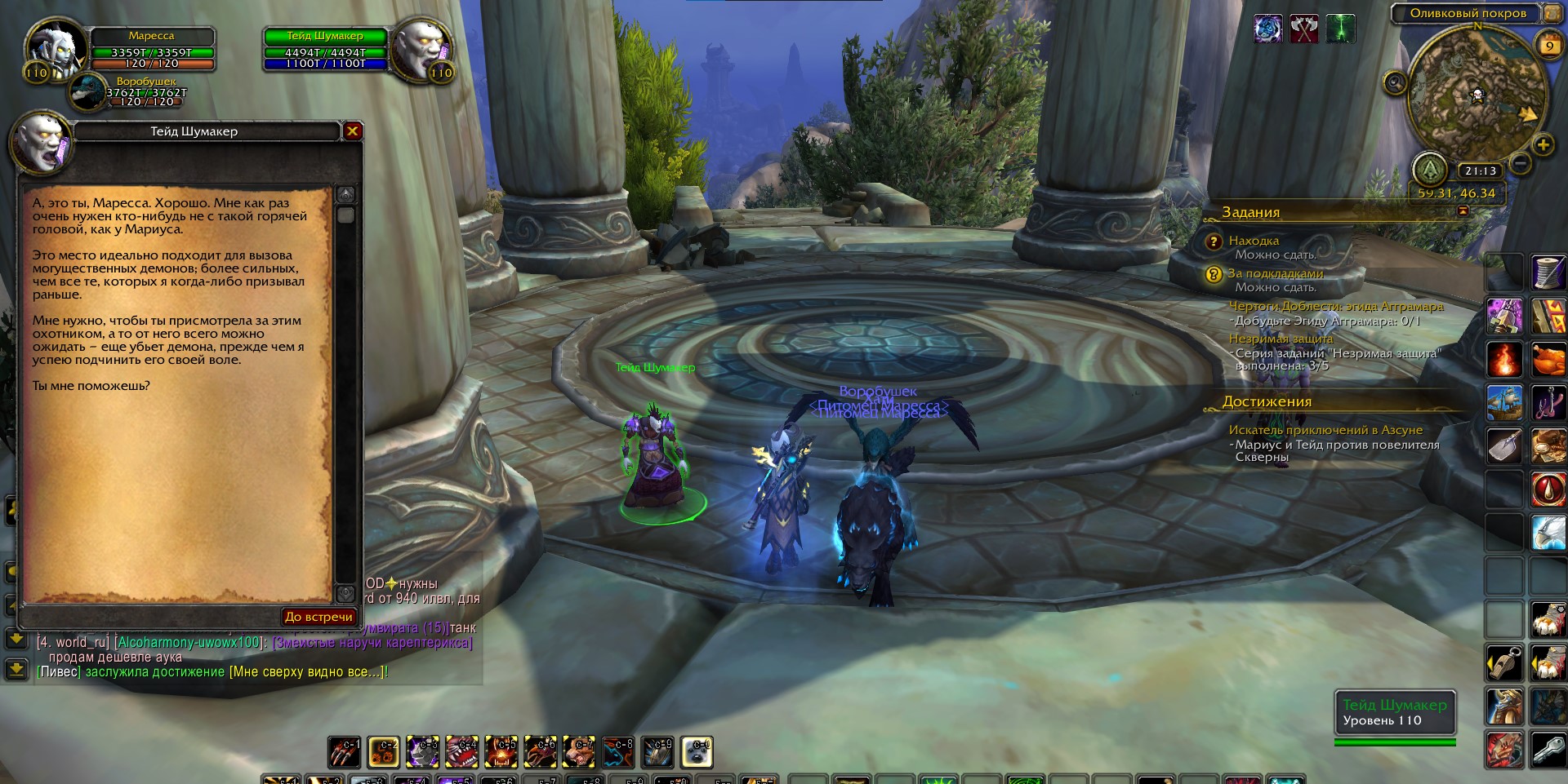 на скрине игрока координаты и точка призыва https://ru.wowhead.com/quest=38212/brogozog#comments , который также является критерием как приключений Мариуса с Тейдом, так и охотника за приключениями Азсуны. на скринах тестера Shadowraze точка старта цепочки квестов на получение игрушки, не связанной напрямую ни с одним из достижений. |