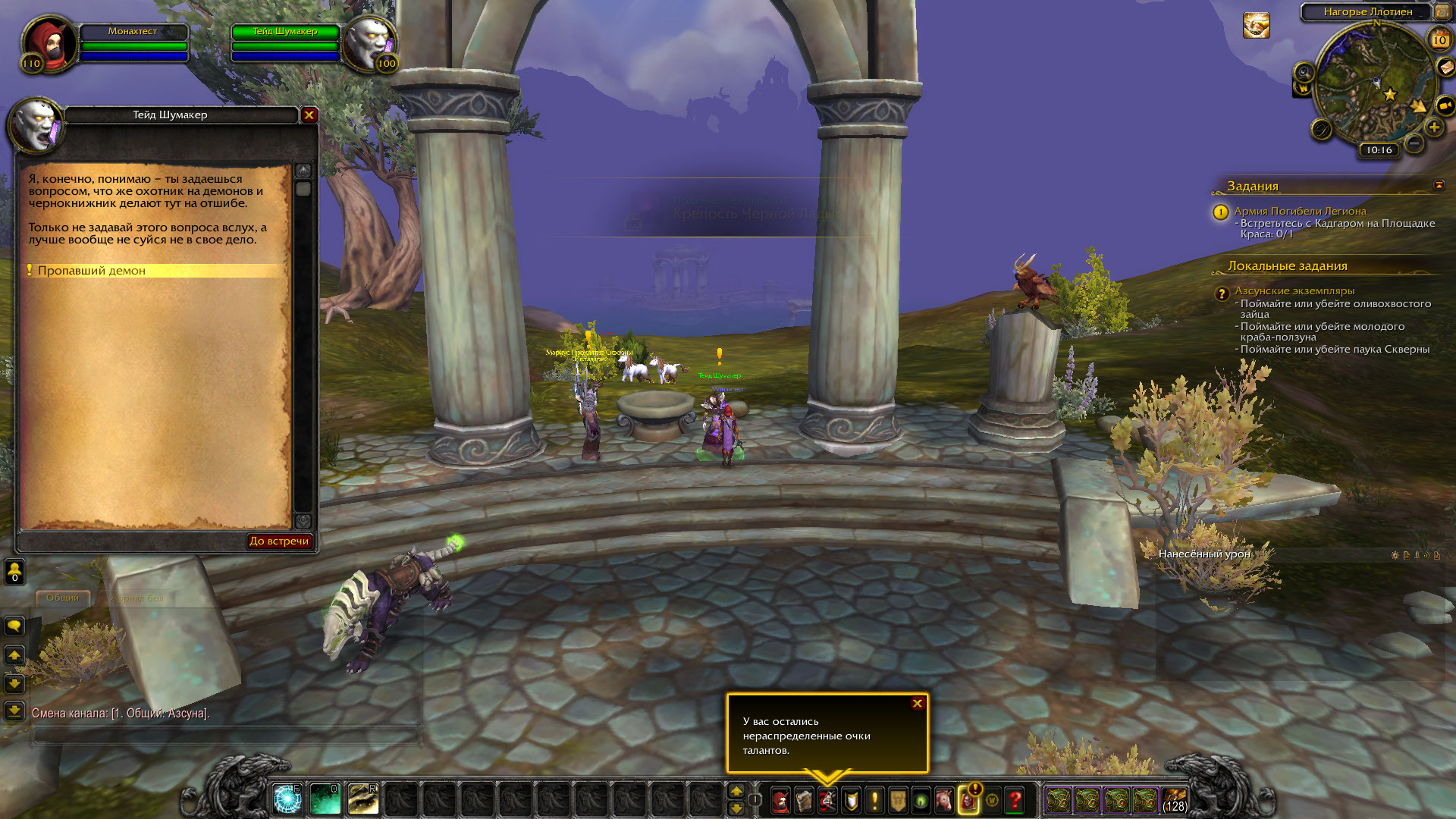 Здравствуйте, нпс с квестом https://ru.wowhead.com/quest=42238/%D0%BF%D1%80%D0%BE%D0%BF%D0%B0%D0%B2%D1%88%D0%B8%D0%B9-%D0%B4%D0%B5%D0%BC%D0%BE%D0%BD находится в другом месте. WoWScrnShot_111021_121717.jpg (467,960 bytes) WoWScrnShot_111021_121726.jpg (413,357 bytes) |