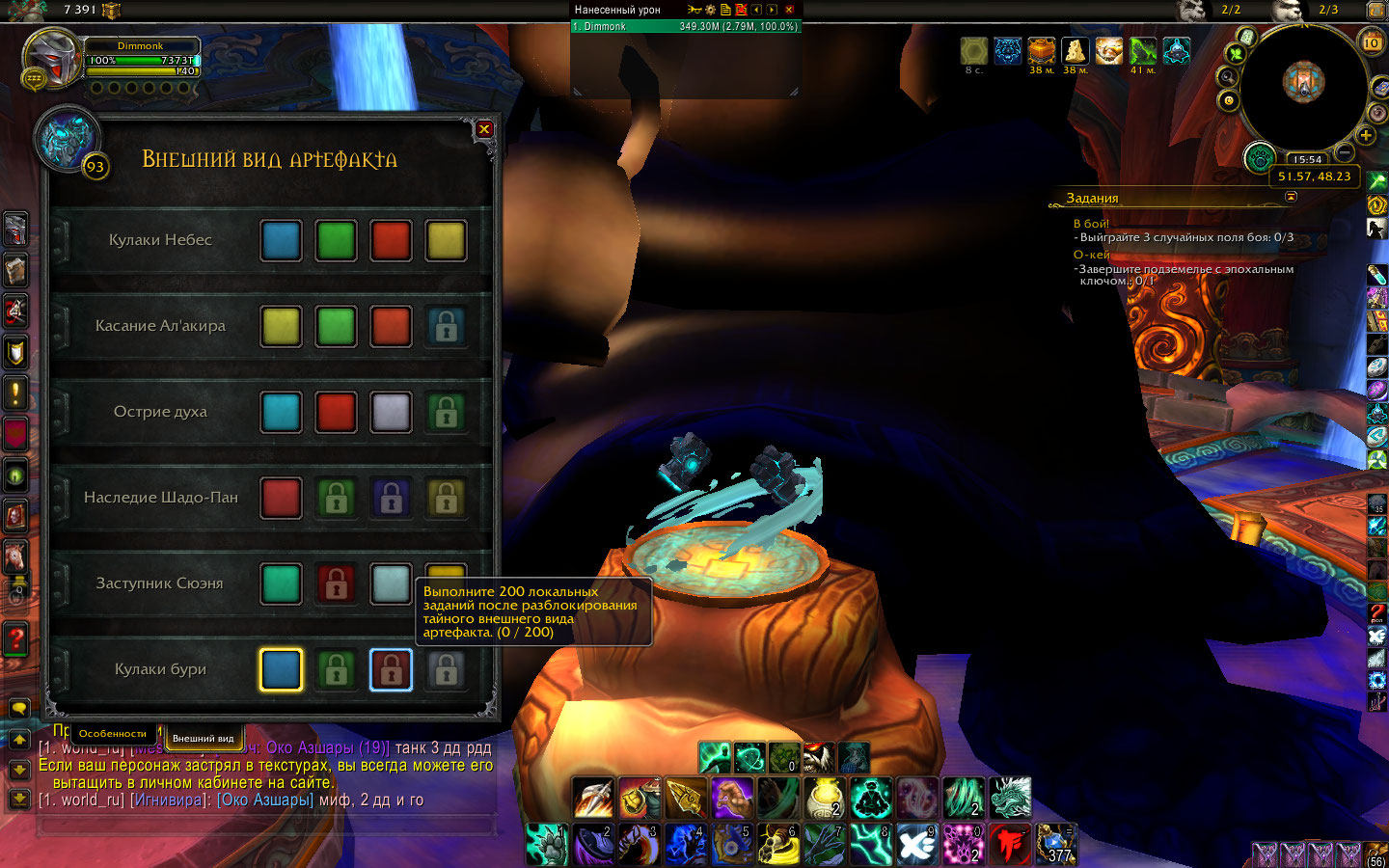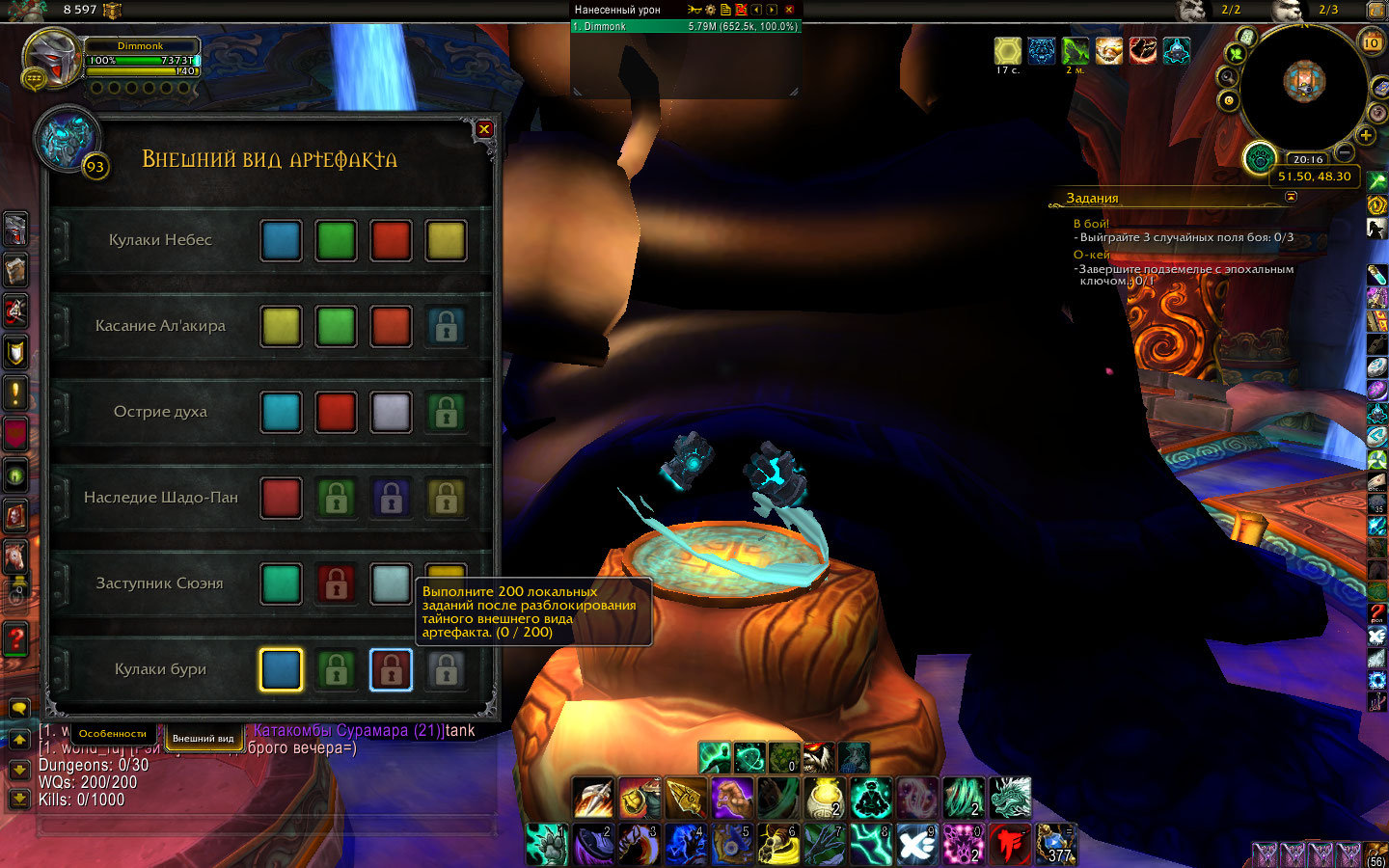 | Description | Разблокировал тайный внешний вид артефакта "Кулаки бури". Хотелось бы открыть все цвета данного вида, но счётчики не показывают выполнение условия открытия. Например для открытия красного цвета необходимо пройти подземелья дополнения легион в количестве 200. Счётчик не реагирует на выполнение условия, постоянно показывает 0/200. Хотелось бы знать, стоит ли тратить время. Остальные виды также разблокированы. | ||||