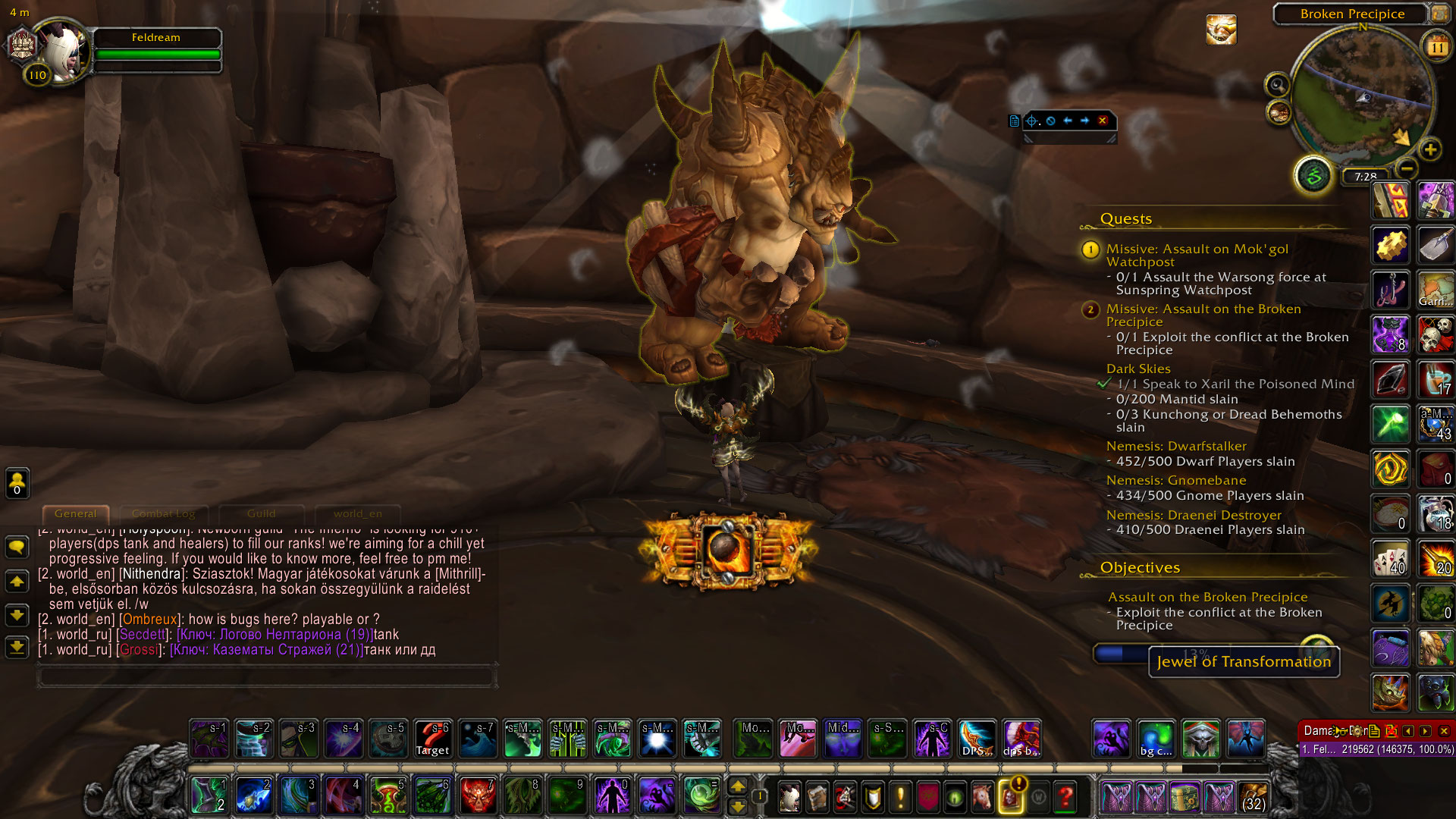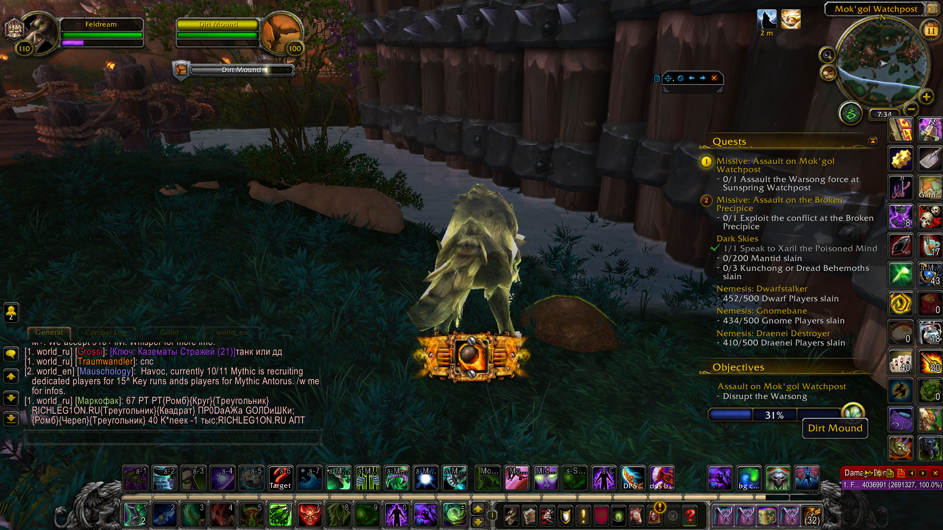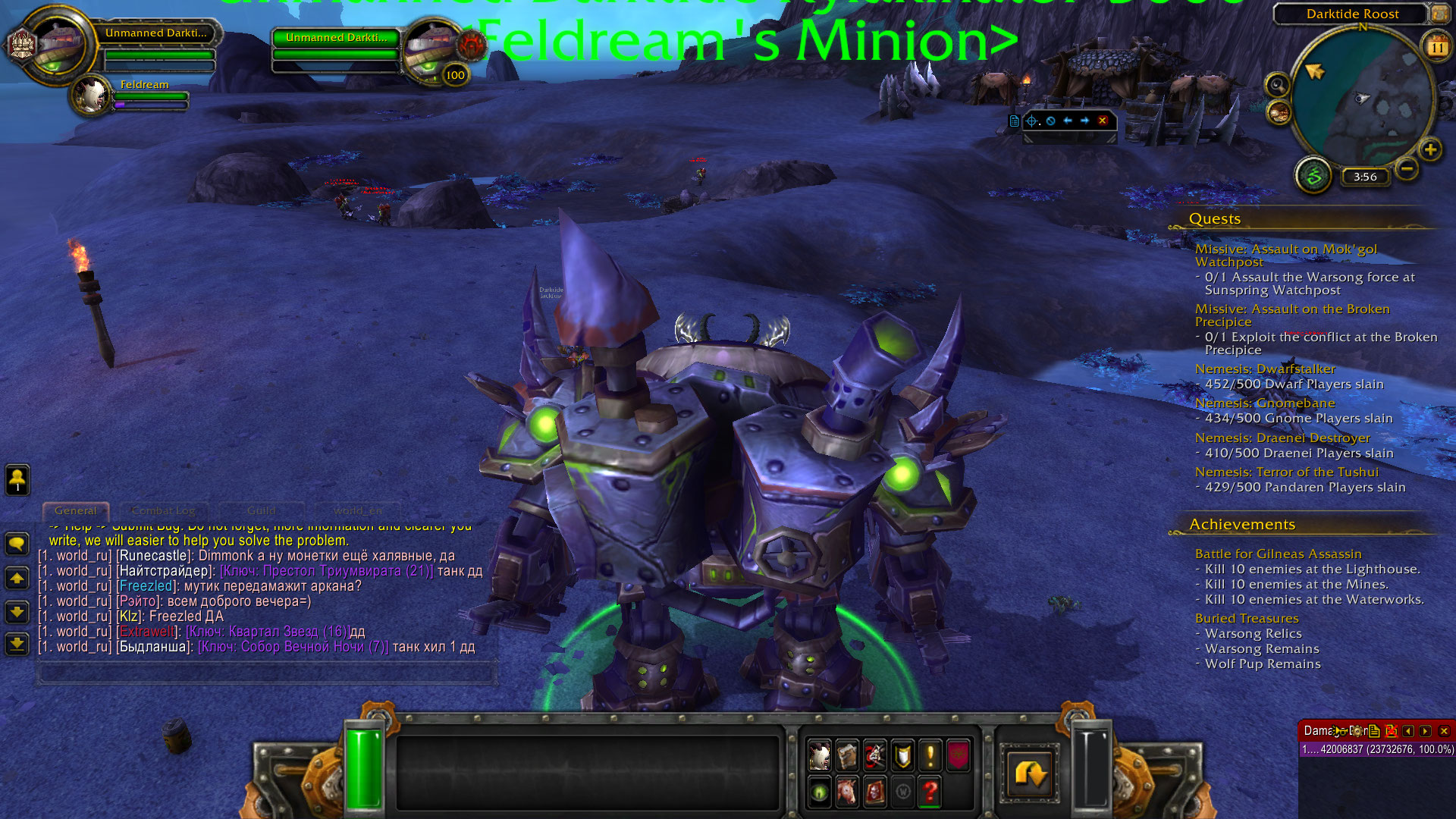 Hello. 1) Confirm, It should be https://www.youtube.com/watch?v=AVY_dxXr5t8. 2) Confirm, After killing an NPC, the criteria for achieving it does not count. "The flight path is still short and cannot cover all mobs." a proof is needed to confirm your words. 3) http://tracker.legionbugs.com/view.php?id=16686 Repeat, sent to the developer, described what and how does not work. 4) https://ru.wowhead.com/achievement=9548 - In the form of a wolf, heaps of earth are not excavated, which should be items, objects 86939 should transfer characters to the tower, as shown in the video https://www.youtube.com/watch?v=clgRgYBxYi4, after using this object, nothing happens to us, also missing nps 87526 https://youtu.be/clgRgYBxYi4?t=184 video where it should be located, also missing nps 87524 https://youtu.be/clgRgYBxYi4?t=200 video where it should be located. I will redirect to the developer. |