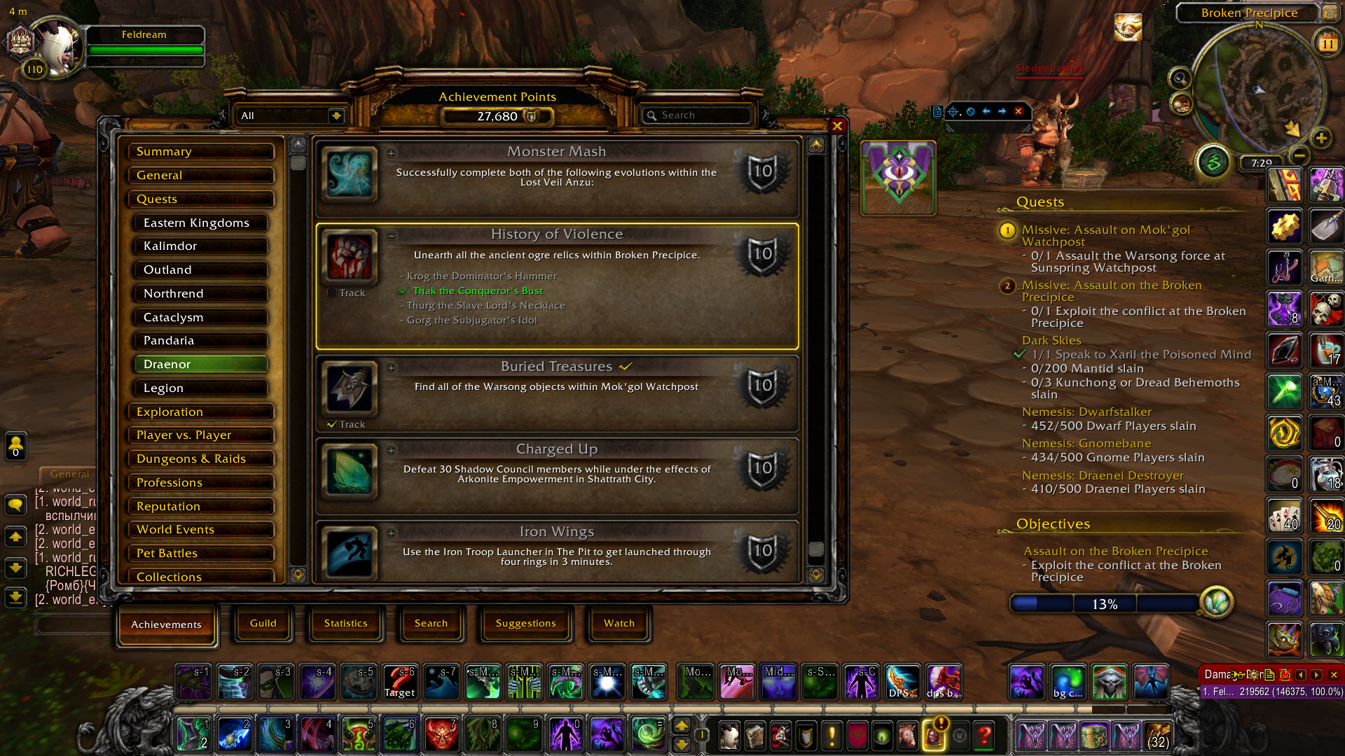 https://www.wowhead.com/achievement=9610/history-of-violence https://www.wowhead.com/achievement=9548/buried-treasures - fixed only the fulfillment of the criteria. And the performance of the NPC and other events was not implemented. Expect corrections. description in updates I have been corrected to be correct. |