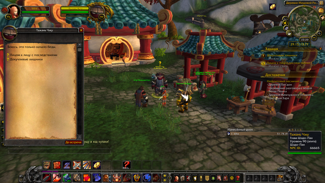 | Description | Добрый день! персонаж: Mimimiya, локация: Нефритовый лес (деревня медовой росы). Невозможно сдать квесты: https://ru.wowhead.com/quest=31771/%D0%BB%D0%B8%D1%86%D0%BE%D0%BC-%D0%BA-%D0%BB%D0%B8%D1%86%D1%83-%D1%81-%D0%BF%D0%BE%D1%81%D0%BB%D0%B5%D0%B4%D1%81%D1%82%D0%B2%D0%B8%D1%8F%D0%BC%D0%B8 и https://ru.wowhead.com/quest=31773/%D0%B4%D0%BE%D0%BA%D1%83%D1%87%D0%BB%D0%B8%D0%B2%D1%8B%D0%B5-%D1%85%D0%B8%D1%89%D0%BD%D0%B8%D0%BA%D0%B8 отсутствует нпс https://ru.wowhead.com/npc=66665/%D1%82%D0%B0%D0%B6%D0%B0%D0%BD%D1%8C-%D1%87%D0%B6%D1%83 Следовательно нельзя завершить этап развития сюжета (обломки "кулака адского крика"). Персонаж перенесённый, релог, исправления в личном кабинете не помогают. Данный баг, наблюдается только у этого чара, квесты проверялись на других персонажах, всё работает без проблем. | ||||