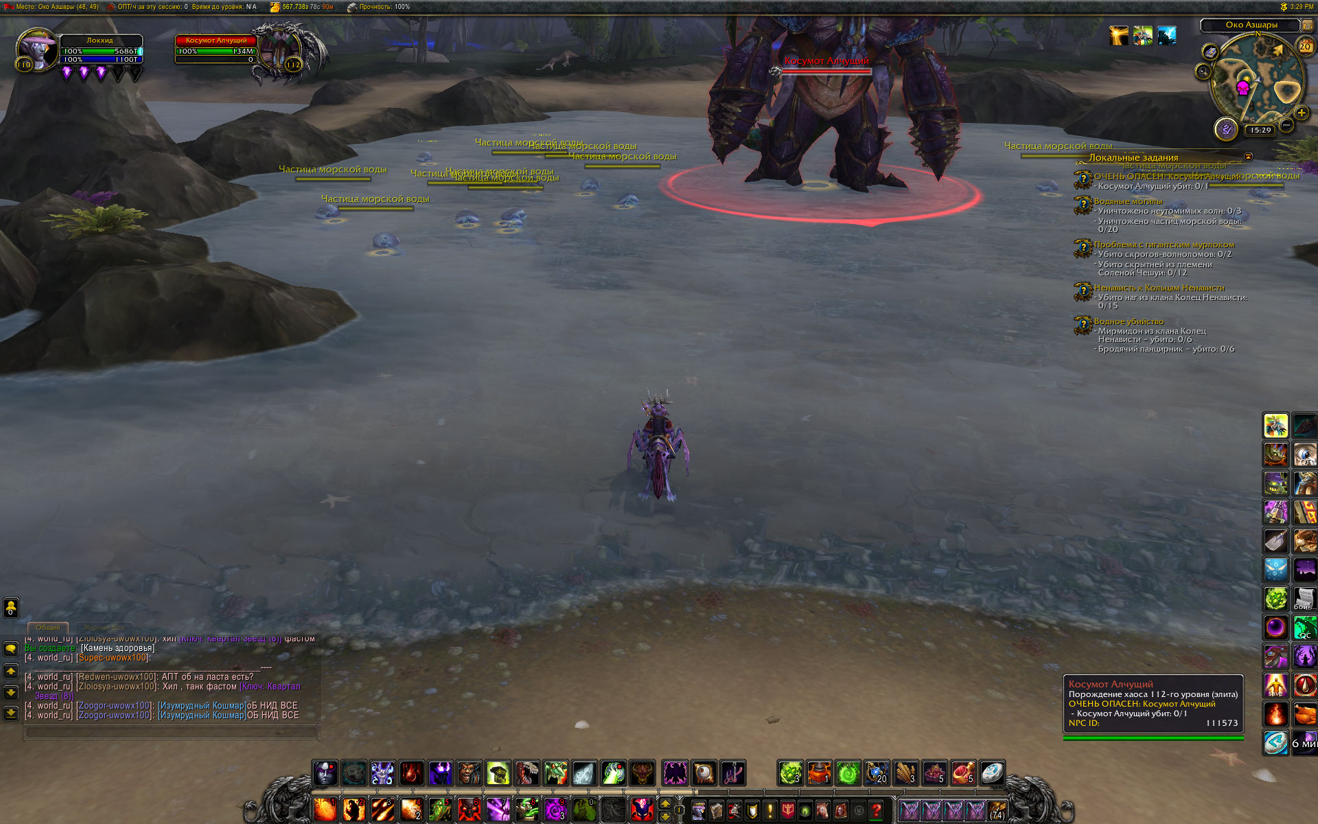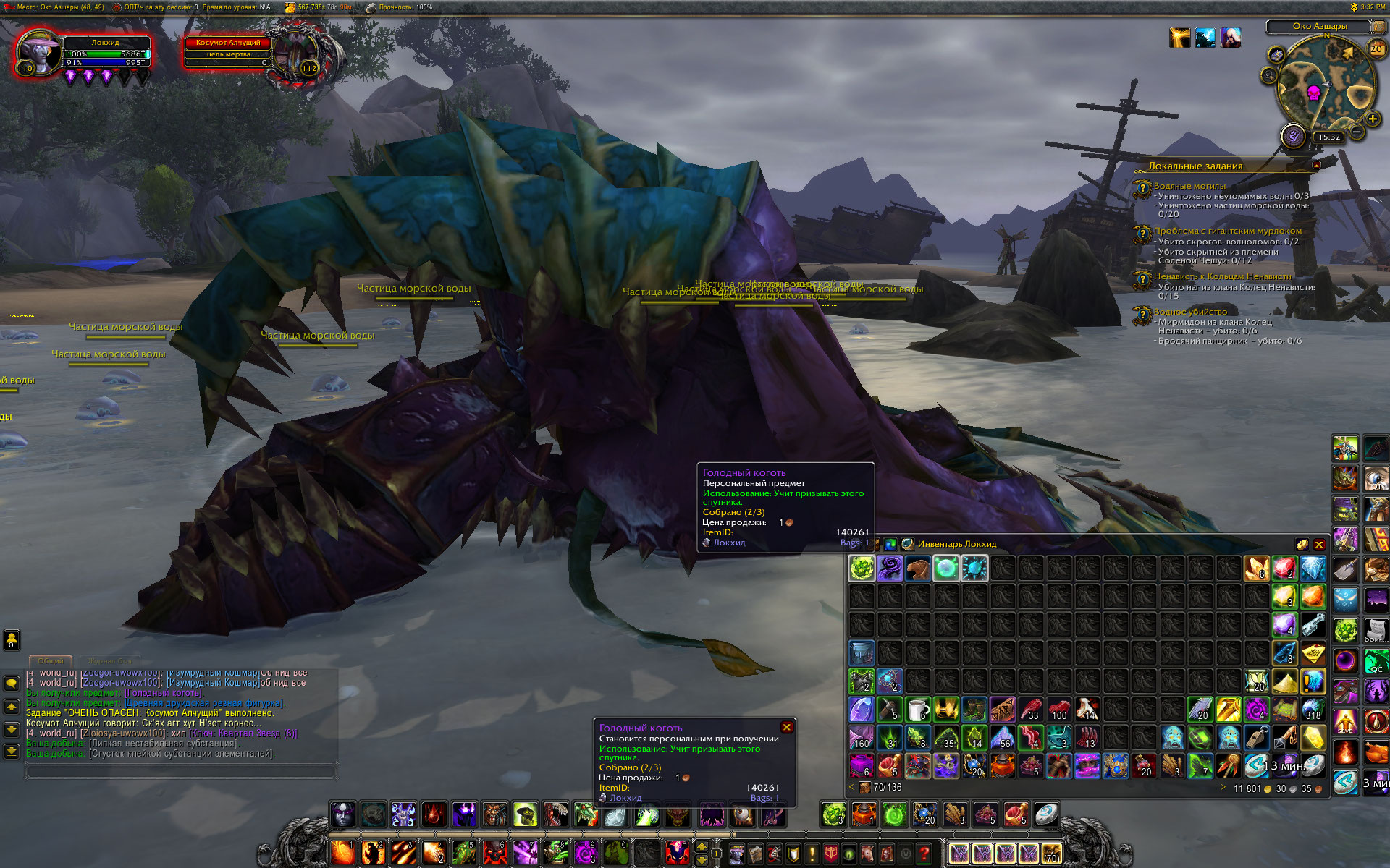 Возможен третий вариант - локалка может выскочить сразу после завершения цепочки, но если в этот период штатно локалка неактивна, то при посещении моба локалка будет исчезать из списка. Во всяком случае, когда я на очередном персонаже пробежался по сферам, локалка появилась сразу, но выполнить ее я не смог, как только входил в ближний круг моба, локалка исчезала. А просто убийство моба не засчитывалось. И вывести моба подальше, чтобы и локалка была и моба убить, у меня так и не получилось. Но для меня это было несущественно, Маунт к тому времени был получен, просто проверял, работают ли сферы, если удалить итем-реликвию из инвентаря. И надо сказать, что через некоторое время локалка появилась в списке WorldQuest List, Косумота убил и получил очередного ненужного пета. Так что уточняющий вопрос - в списке локалок локации нужная локалка была в тот момент? А когда Вы вступали в сражение с мобом локалка оставалась или исчезала из списка принятых (справа)? |