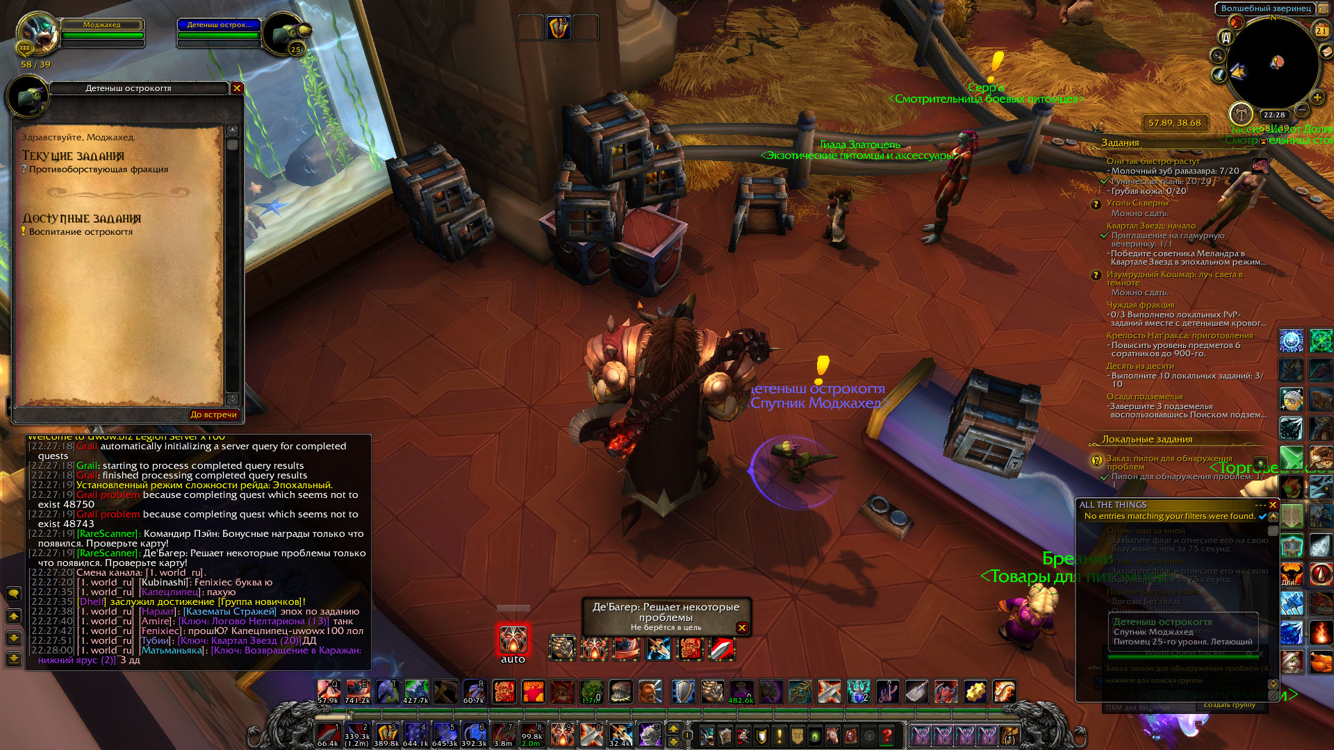 | Description | Не работают квесты: 1) https://ru.wowhead.com/quest=44981/%D0%B2%D1%80%D0%B0%D0%B6%D0%B4%D0%B5%D0%B1%D0%BD%D0%B0%D1%8F-%D1%84%D1%80%D0%B0%D0%BA%D1%86%D0%B8%D1%8F не засчитываются локалки 2) https://ru.wowhead.com/quest=45005/%D0%BF%D1%80%D0%BE%D1%82%D0%B8%D0%B2%D0%BE%D0%B1%D0%BE%D1%80%D1%81%D1%82%D0%B2%D1%83%D1%8E%D1%89%D0%B0%D1%8F-%D1%84%D1%80%D0%B0%D0%BA%D1%86%D0%B8%D1%8F не засчитываются локалки 3) https://ru.wowhead.com/quest=45006/%D1%87%D1%83%D0%B6%D0%B4%D0%B0%D1%8F-%D1%84%D1%80%D0%B0%D0%BA%D1%86%D0%B8%D1%8F не засчитываются локалки Также появляется баг, что снова у петов появляется начальный квест. На скринах видно, что у одного квест на ПВП и начальный. На другом скрине должен был быть квест на ПВП локалки, но предлагает только начальных, когда пет уже 25 лвла. Баги с питомцами (если не сюда, то извиняюсь): 1) Про локалки думаю итак знаете, что не работают никакие 2) Проблемы с битвами питомцев, если противник летающий питомец (например https://ru.wowhead.com/npc=97076/%D0%BE%D0%BF%D0%B5%D1%80%D0%B8%D0%B2%D1%88%D0%B8%D0%B9%D1%81%D1%8F-%D0%BA%D0%BE%D1%80%D0%BE%D0%BB%D0%B5%D0%B2%D1%81%D0%BA%D0%B8%D0%B9-%D0%BE%D1%80%D0%B5%D0%BB + чайка + альбатрос и подобные) - они летают зачастую высоко и быстро, нужно умудряться поймать их так, чтобы ровная поверхность была, но и на этом не заканчиваются мучения: бой может завершиться просто так и пет снова летает в воздухе. Я чайку раза с 30-40 поймал и это не говоря уже о поиске редких. Можно заселить их на ровном месте и указать маршрут нормальный 3) https://ru.wowhead.com/npc=61826/%D1%87%D1%83%D0%BC%D0%BD%D0%BE%D0%B9-%D1%8F%D1%81%D1%82%D1%80%D0%B5%D0%B1 этого вообще нет (условия выполнены) 4) проблемная вся цепочка на учителей питомцев, которую начинают NPC в столице (по крайней мере Оргримар) - она начинается постоянно заново, и застреваешь выполняя в Нордсколе, т. к. там летающий пет обрывает бой и квест не выполнить | ||||