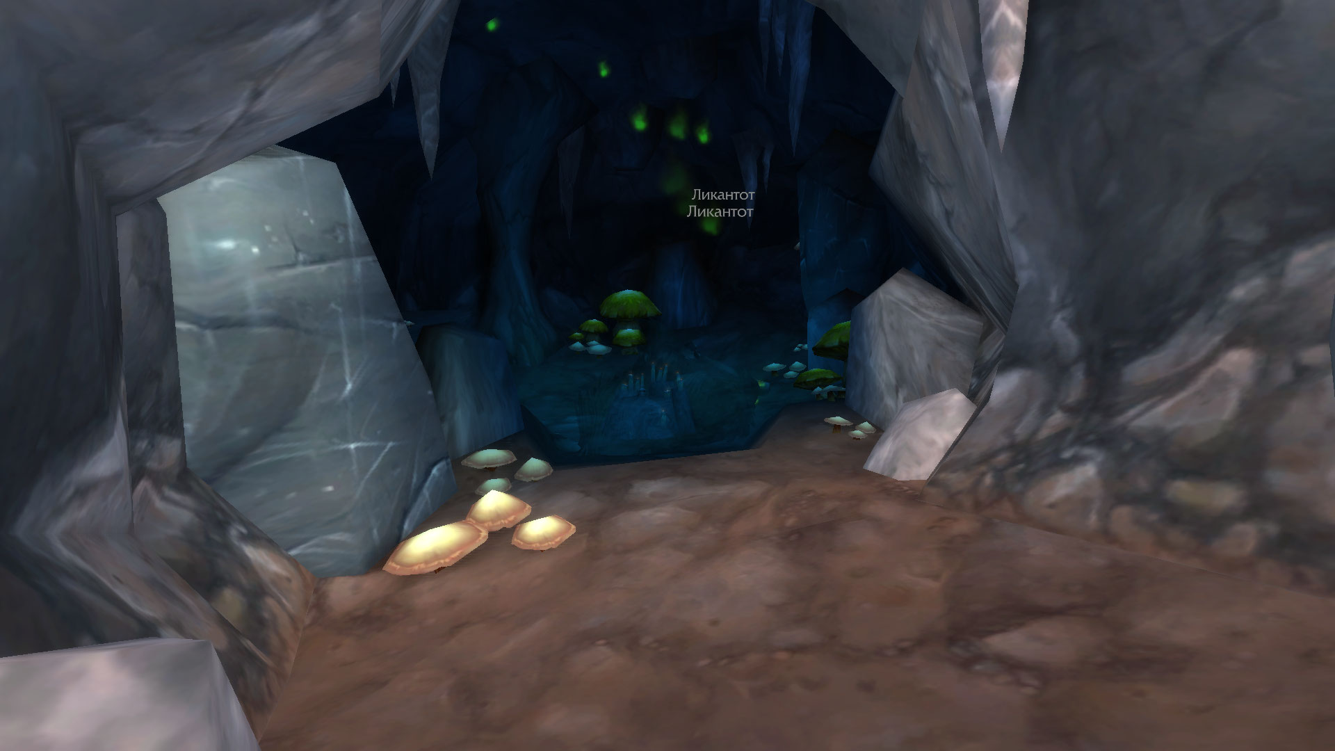 Так сказать, полное самообслуживание. Поскольку НПС в самой пещере не появляется, надо ножками добежать - в углу ямы, под тропой по которой спускались сверху, есть святилище. Там и стоит дух Ло'гоша / Голдринна. |