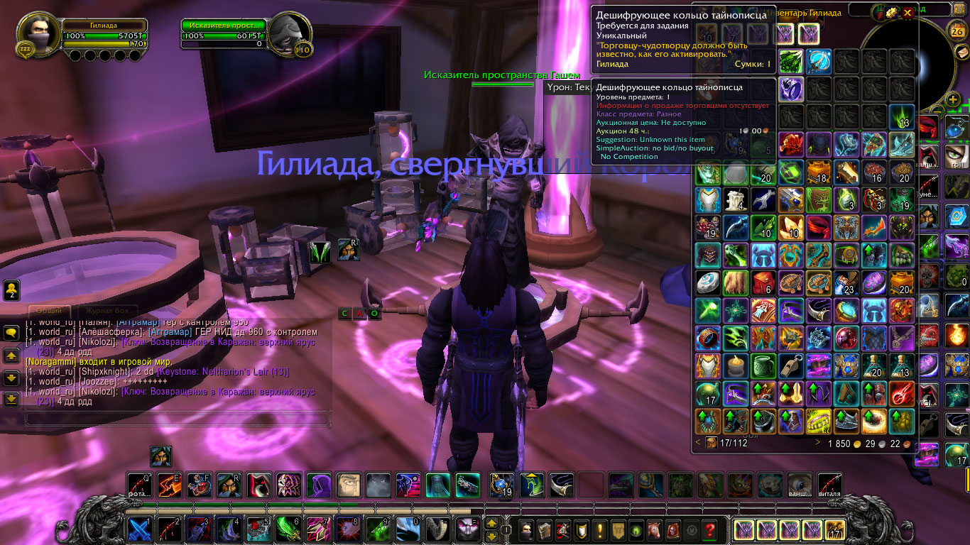 | Description | НПС 57800 Чудотворец Рафир за 10000 золота выдает Заряженное дешифрующее кольцо ID 74748 которое понадобится для расшифровки письма которое выдает НПС 32548 Корастраза после диалога выдает зашифрованное письмо которое можно разшифровать с помощью Заряженное дешифрующее кольцо ID 74748 и после завершается квест . | ||||