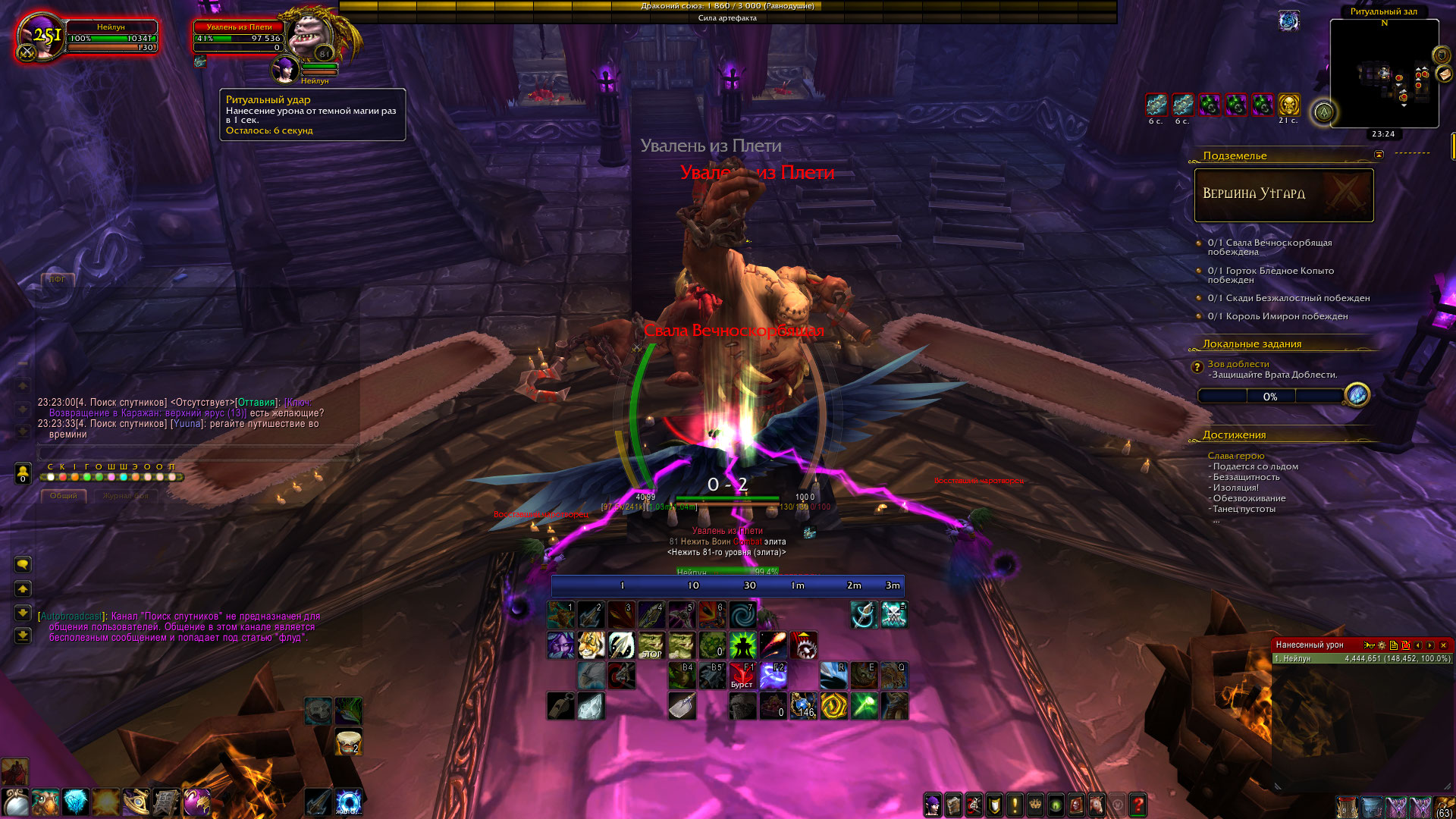 | Description | Неправильно работает способность "Ритуальный удар". В описании способностей босса написано "Через 25 секунд меч Свалы падает на алтарь..." и одновременно с этим исчезают восставшие чаротворцы и их стан. У нас же меч падает через 8 секунд от начала ритуала, но чаротворцы отрабатывают и дальше свои 25 секунд. https://www.youtube.com/watch?v=Lsj5eFqliIo как должно работать. | ||||