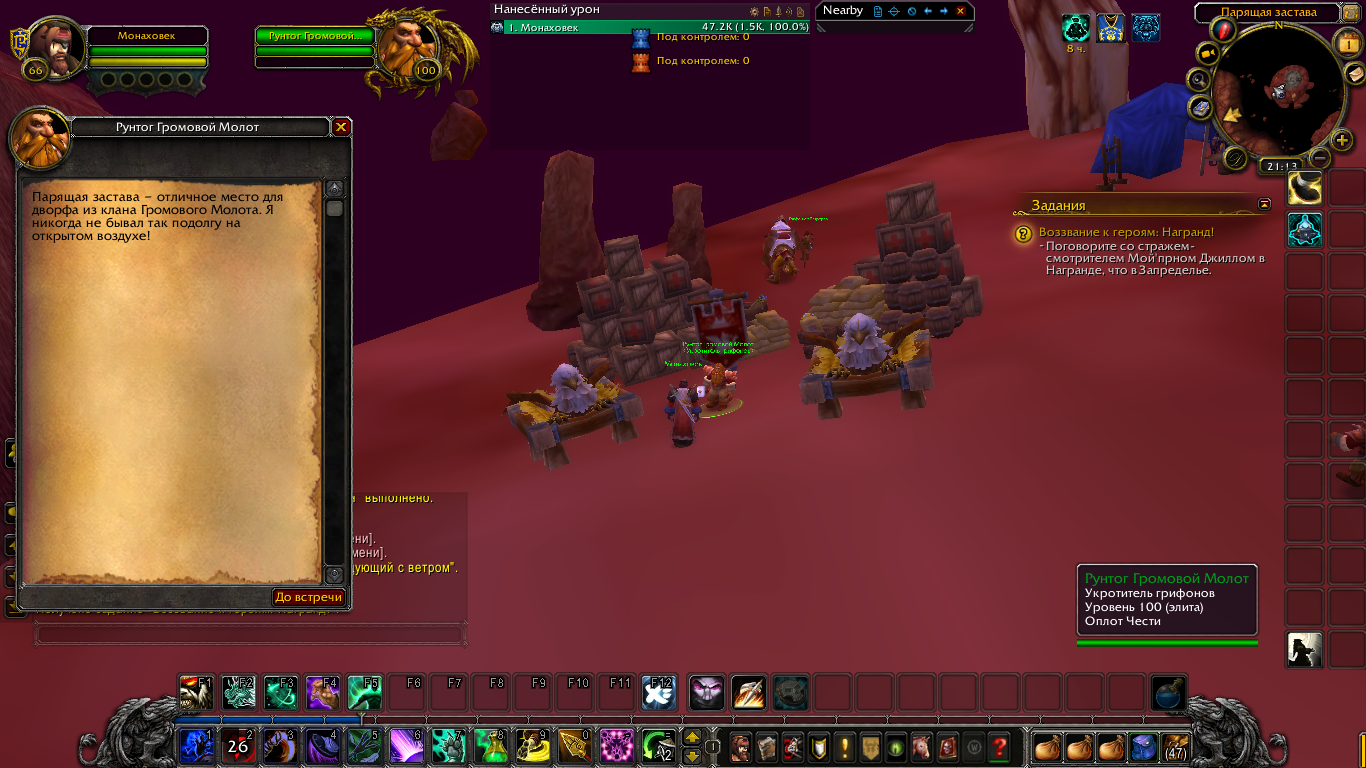 | Description | Полететь по квесту туда можно, а вот обратно не работает, открывается разговор с НПС, ладно если бы пешком можно было выбежать, но там ведь пропасть, оттуда никак не выйти, только камнем телепортации или камнем упасть в пропасть в возродиться у ангела | ||||